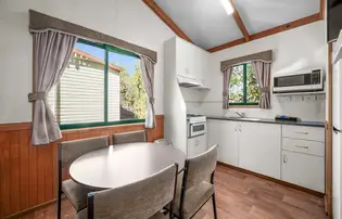 This comfortable cabin is ideal for couples or small families, sleeping up to four guests with a queen bed in one room and a double bed in the other. The air-conditioned interior includes a TV and a compact kitchenette with microwave, stovetop, toaster and kettle. All linen is provided, offering a simple and convenient stay in the heart of Albury.