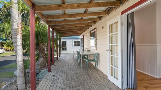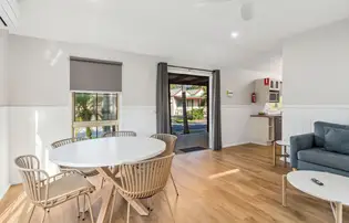 Set among garden surrounds, this three-bedroom villa is ideal for groups of up to six. It includes two queen beds and one bunk bed, two bathrooms, and a full kitchen with dishwasher. The air-conditioned living space opens onto a private verandah with outdoor dining. Pet-friendly and practical, this villa is great for longer stays with family or friends.