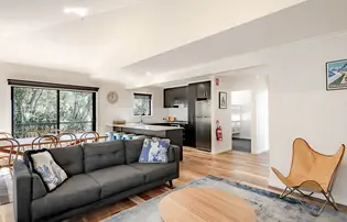 Spread out in style with this expansive loft-style lodge, ideal for families or groups of up to ten. Featuring three bedrooms and a spacious loft, it includes two king beds (which can be split into singles on request), a double bed, two singles, and two sets of bunks. The lodge offers three bathrooms, a fully equipped kitchen, open-plan living and dining area with gas fireplace, and a private balcony with scenic views. Located in Crackenback Ridge near lifts, shops, and dining, it’s a true alpine home away from home.