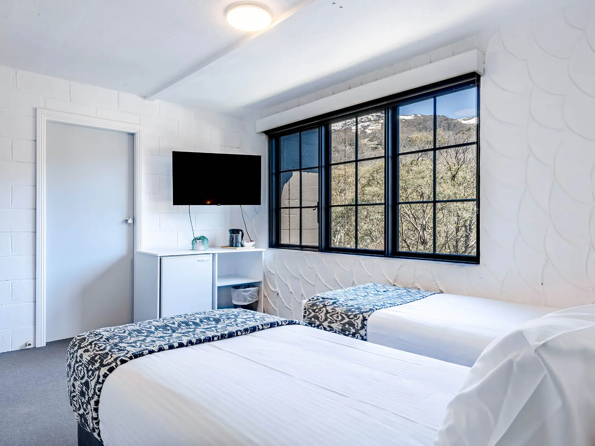 Soak up mountain views from this generously sized three-bedroom suite, perfect for families or groups of up to six. Each bedroom features a king bed, with the flexibility to split into two singles upon request. The suite includes an ensuite bathroom, flat-screen TV, complimentary Wi-Fi, and a bar fridge with tea and coffee facilities. A spacious alpine retreat offering comfort and style in the heart of Thredbo.