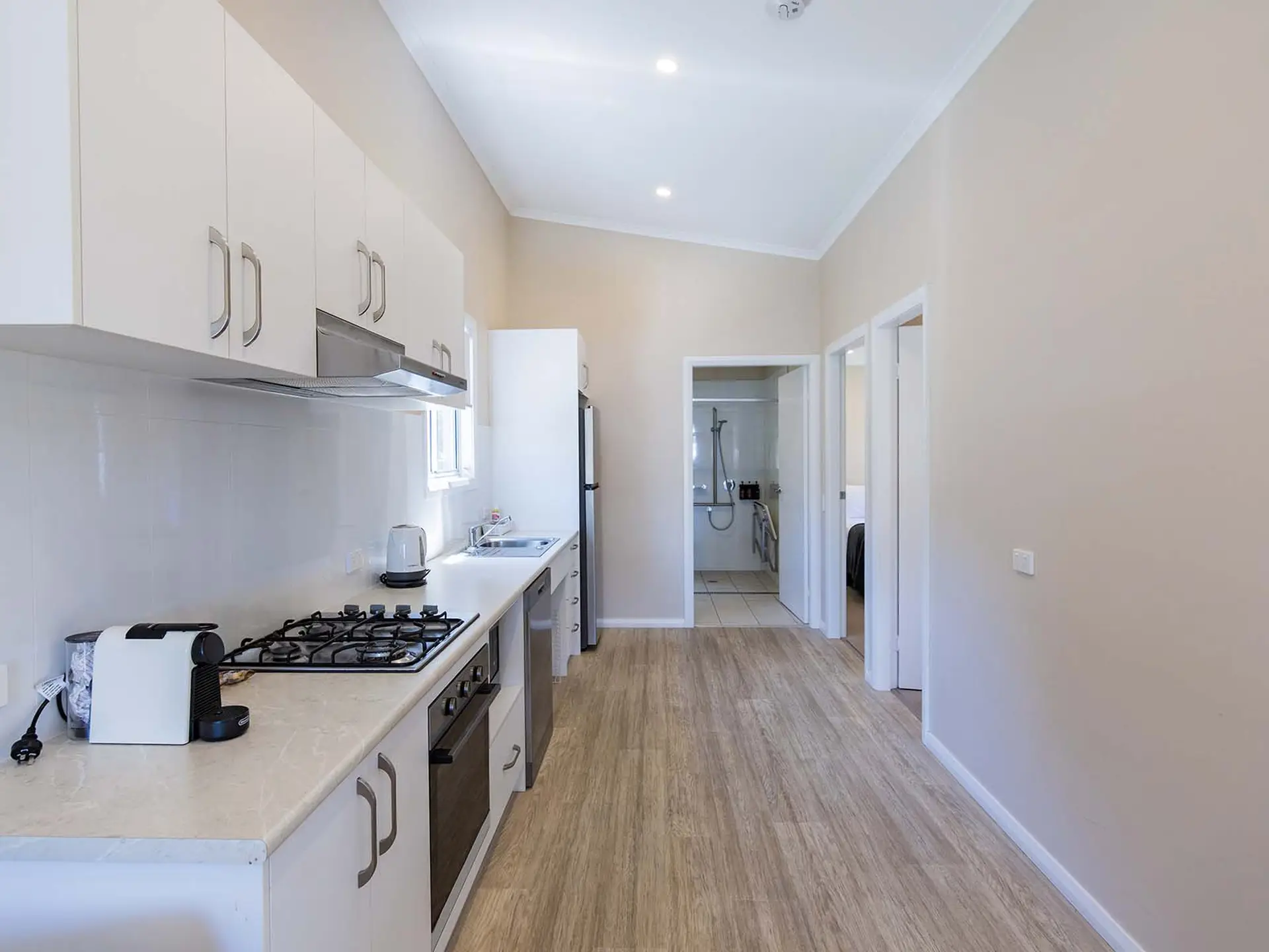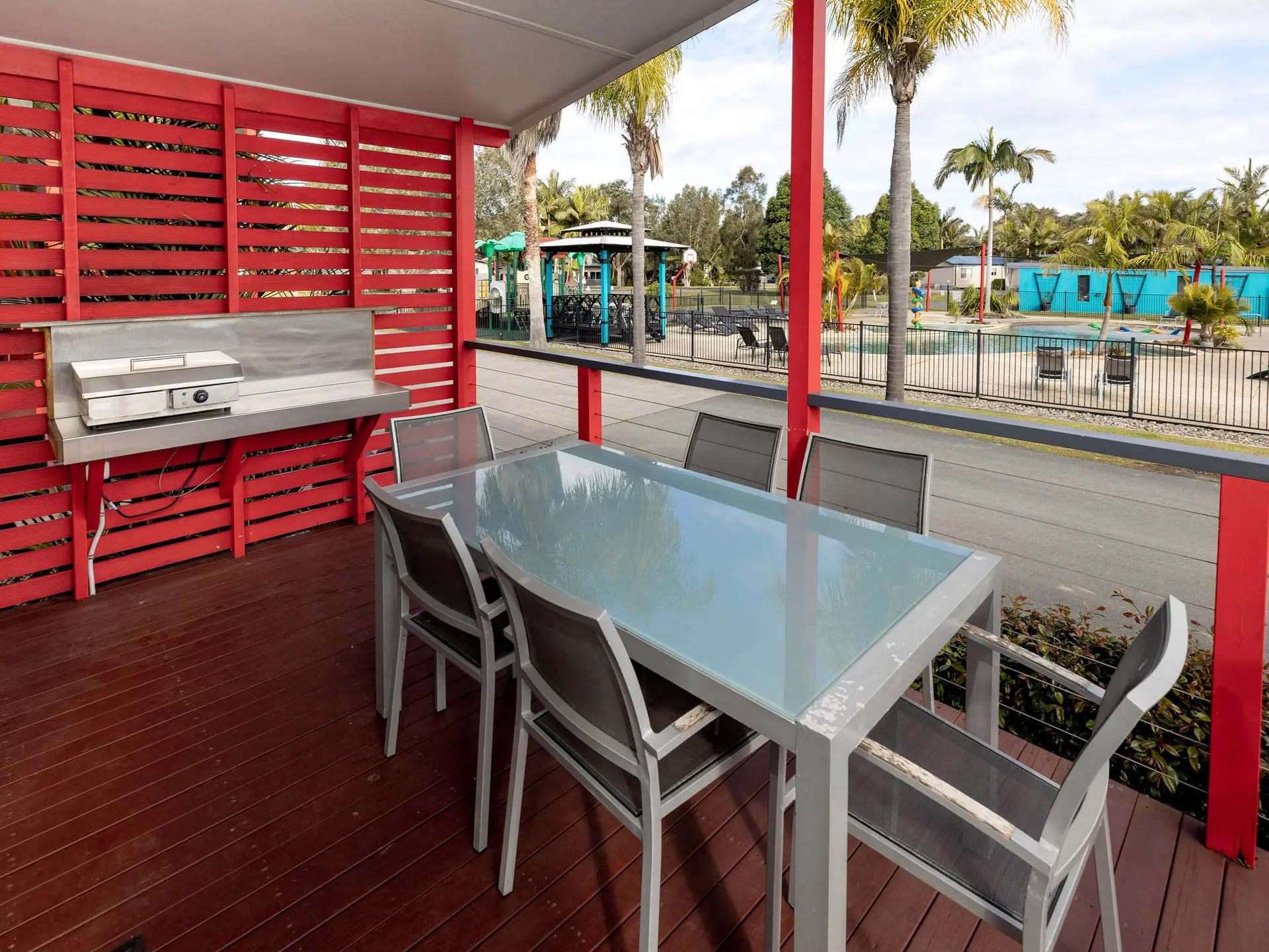Enjoy stunning pool views from this thoughtfully designed, accessible villa that sleeps up to five guests across two bedrooms. The master bedroom features a queen bed, while the second bedroom includes a single bed and a bunk bed—ideal for families or small groups. The well-equipped kitchen offers a stovetop, microwave, dishwasher, and fridge. Step outside to a private deck with a BBQ, perfect for relaxing and taking in the serene poolside atmosphere.