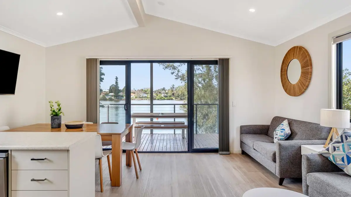 Wake up to the river drifting by and wander into town for your morning coffee.
