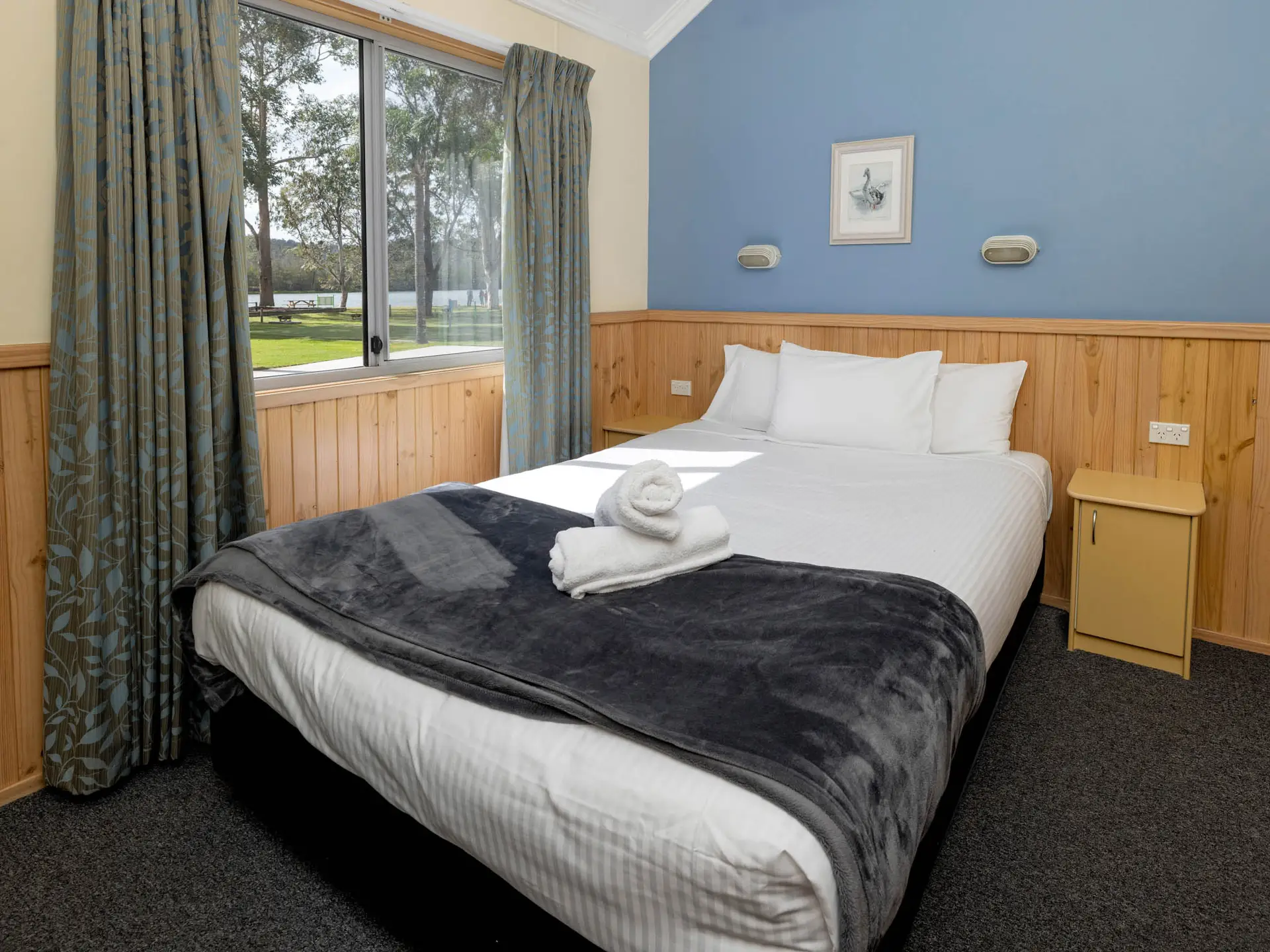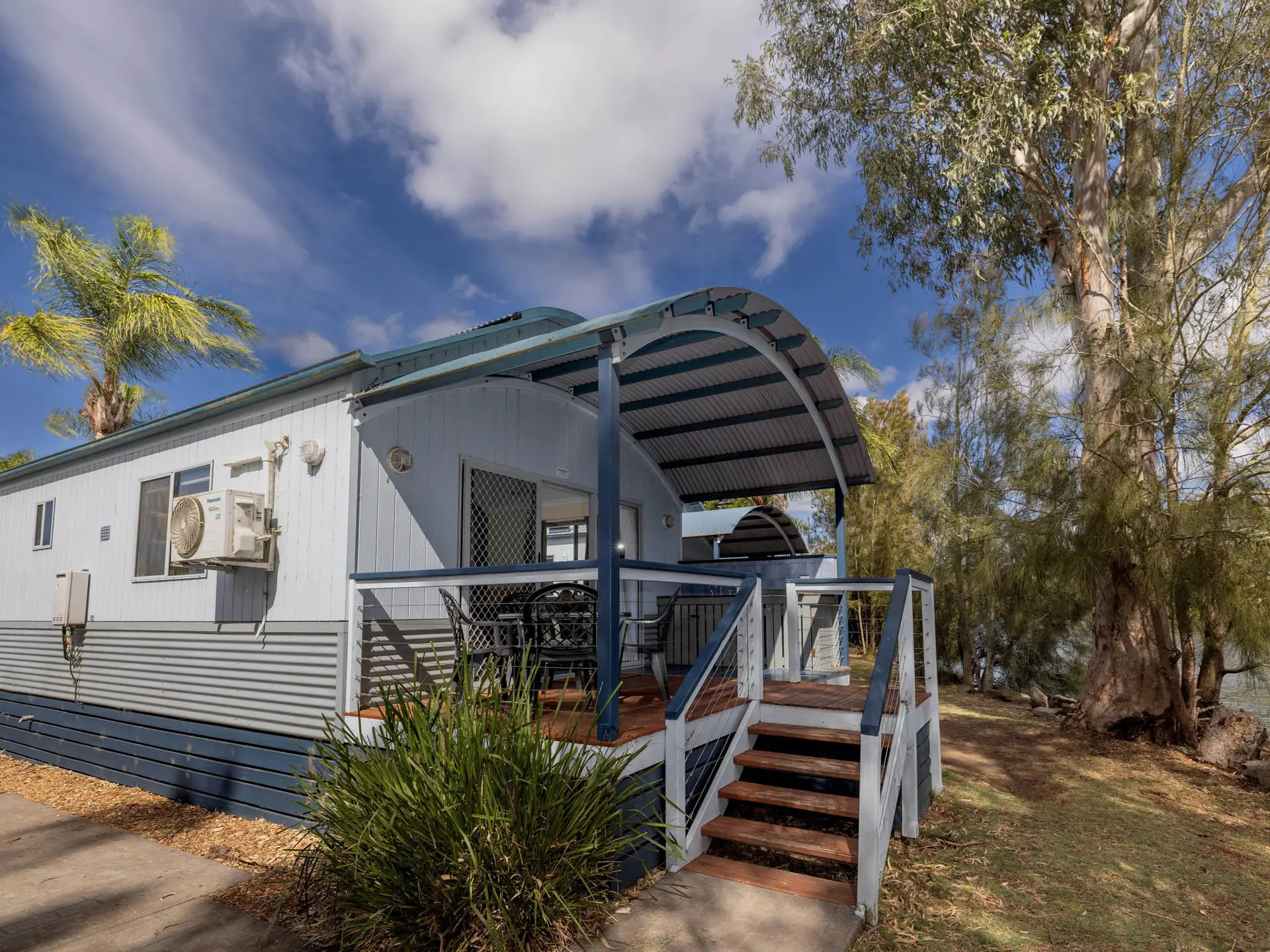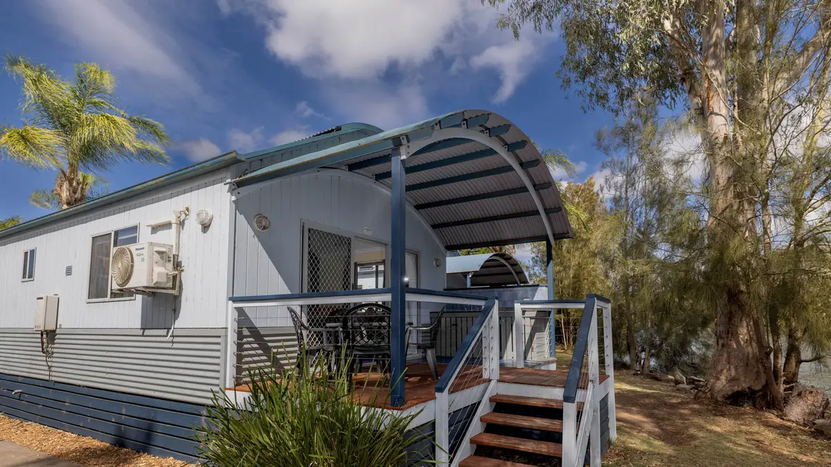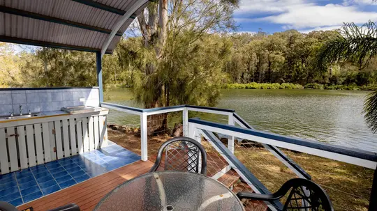 Set right by the river, this villa sleeps up to five with a double, bunk and single bed. It includes a self-contained kitchen, bathroom, and private deck with BBQ and dining set. A practical and scenic option for couples or families wanting to enjoy the Clyde River outlook.