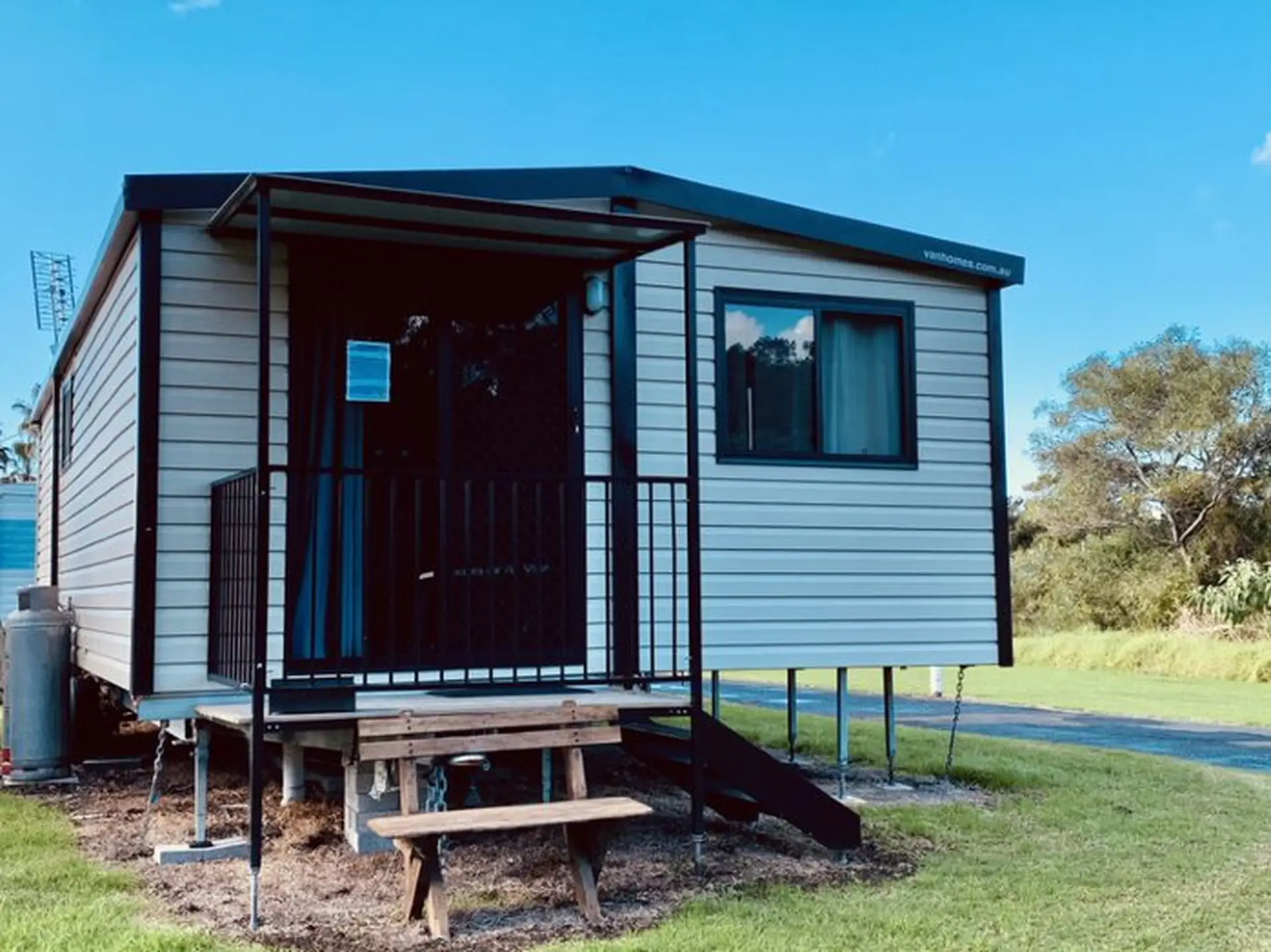 Unwind in this spacious two-bedroom cabin with peaceful creek views, perfect for families or small groups of up to four. Featuring a queen bed and bunk bed, it offers a full kitchen with gas oven, private bathroom, dining area, TV, and reverse-cycle air conditioning. A comfortable coastal retreat just moments from the water.