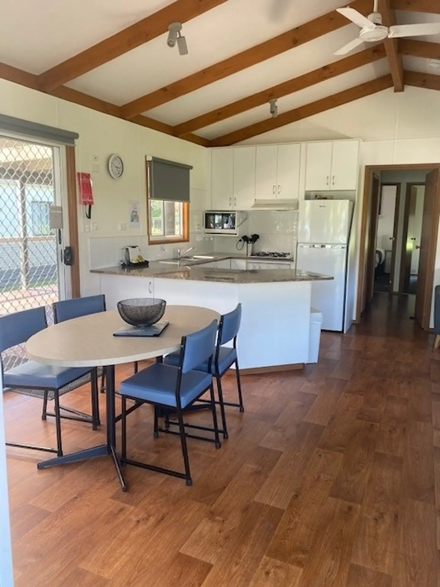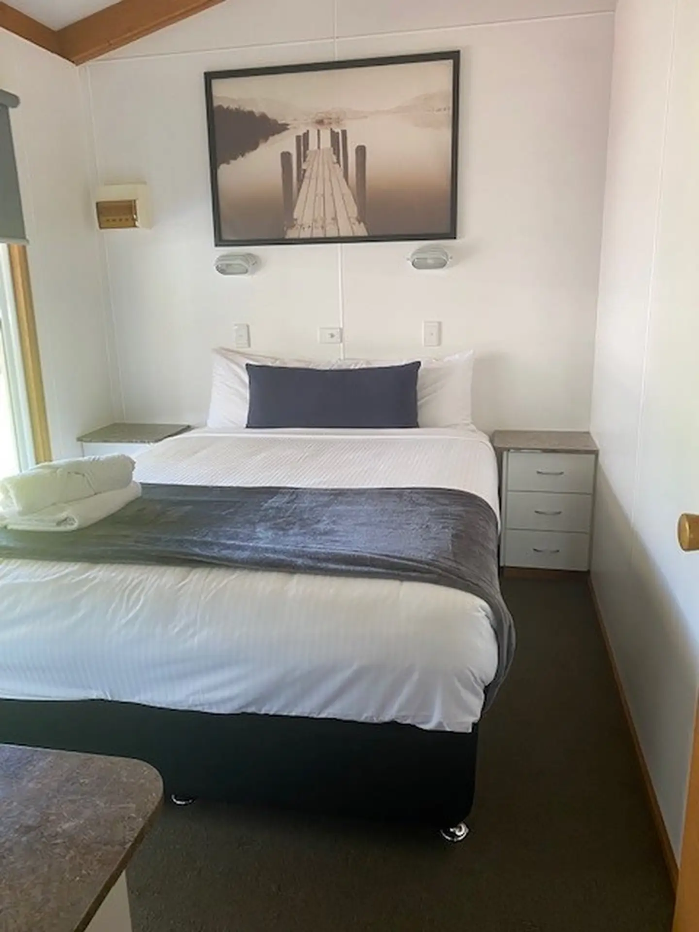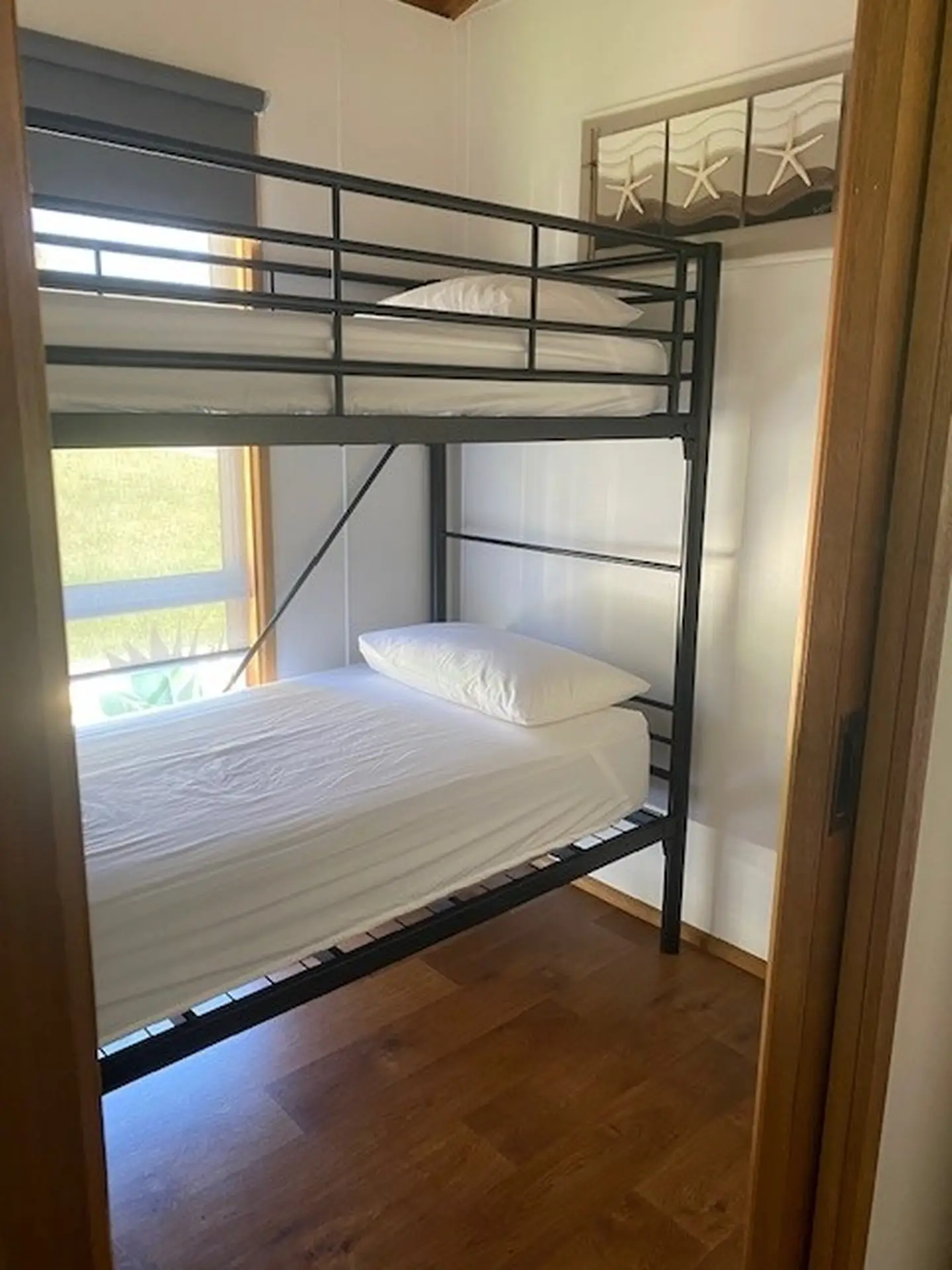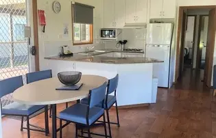 Perfect for families, this spacious house offers three bedrooms with two queen beds and a bunk bed set, comfortably sleeping up to six guests. The full kitchen includes a dishwasher, oven, microwave and fridge-freezer, while the bathroom features a washing machine and separate toilet. Relax with air conditioning, TV, and a generous verandah with private BBQ and fireplace—ideal for lakeside living year-round.