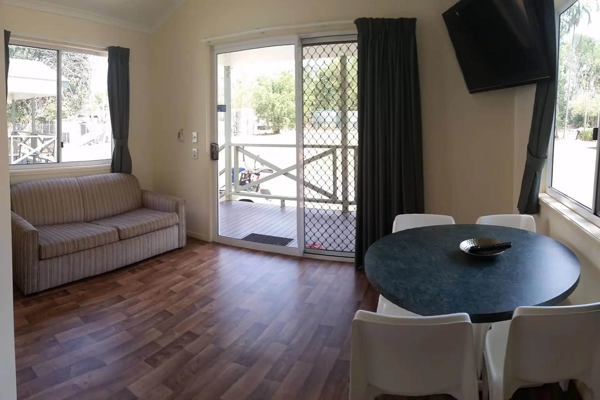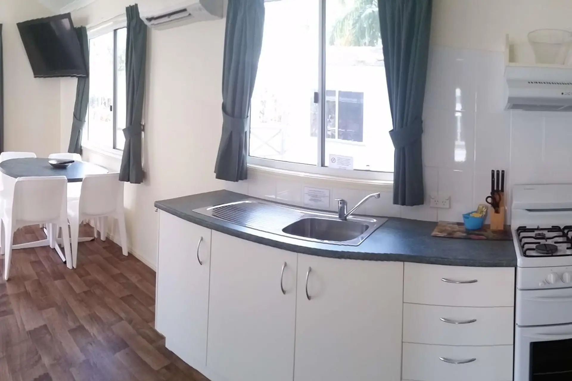 This superior cabin sleeps up to four guests, with a Double bed in one bedroom and a set of single bunks in the other. It features a fully equipped kitchen, air-conditioned living area with TV, and a private bathroom with shower over the bath. Step out onto the shaded balcony to relax after a day exploring Darwin and enjoy the peaceful surroundings.