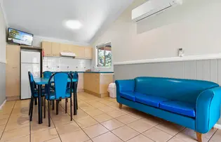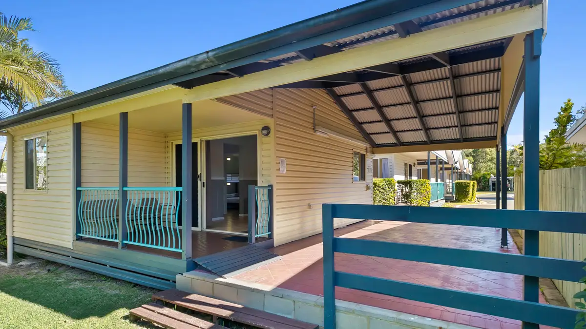 Designed for comfort and accessibility, this two-bedroom cabin sleeps up to five with a queen bed and double/single bunk. It features a full kitchen, open-plan living, air conditioning, and TV. Accessibility highlights include a ramped entry, roll-in shower, and handrails. Enjoy the grassed yard from your covered patio. With no internal steps and all essentials provided, it’s a practical, inclusive option for a relaxed Bribie Island stay.