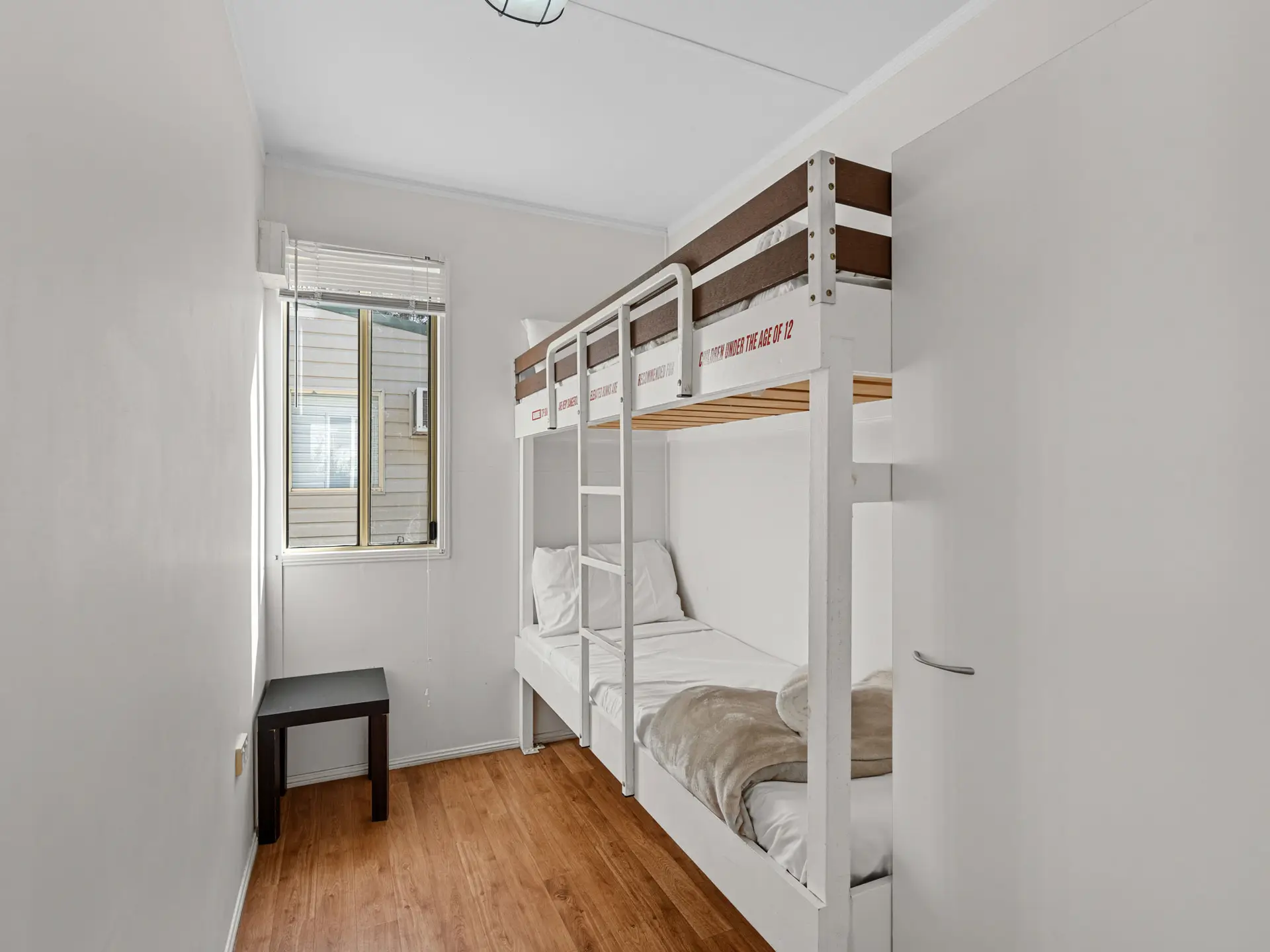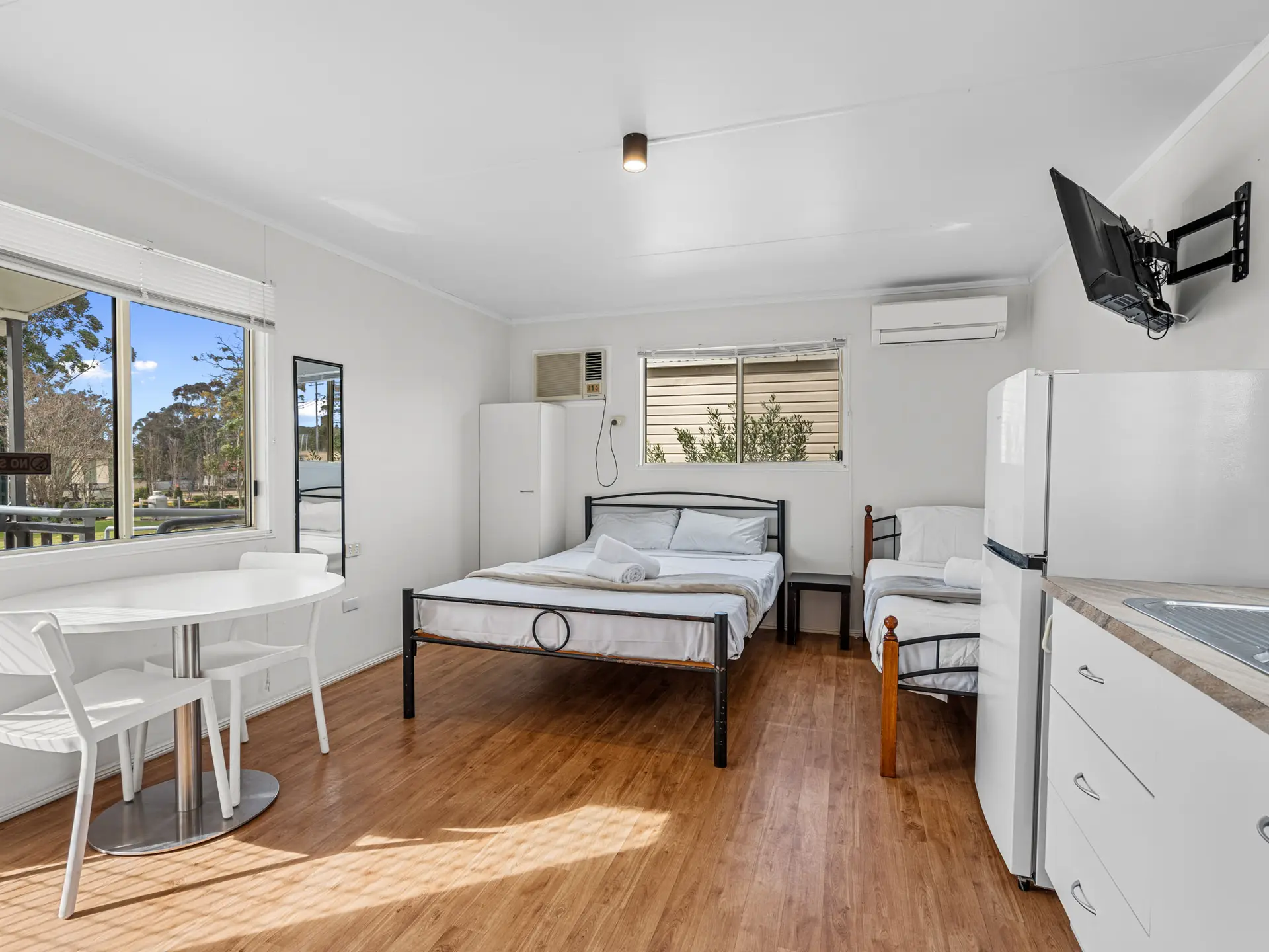 Retrieving data. Wait a few seconds and try to cut or copy again.This pet-friendly cabin with ramp access sleeps up to five, with a double and single bed in the main area and a separate bunk room featuring child-sized beds best suited to younger guests. It includes a kitchenette, dining space, TV, and private bathroom for added convenience. Heating and cooling ensure year-round comfort. Outside, a covered balcony with outdoor seating provides the perfect place to relax with your furry friend. A clean, practical base for easy, pet-friendly getaways.