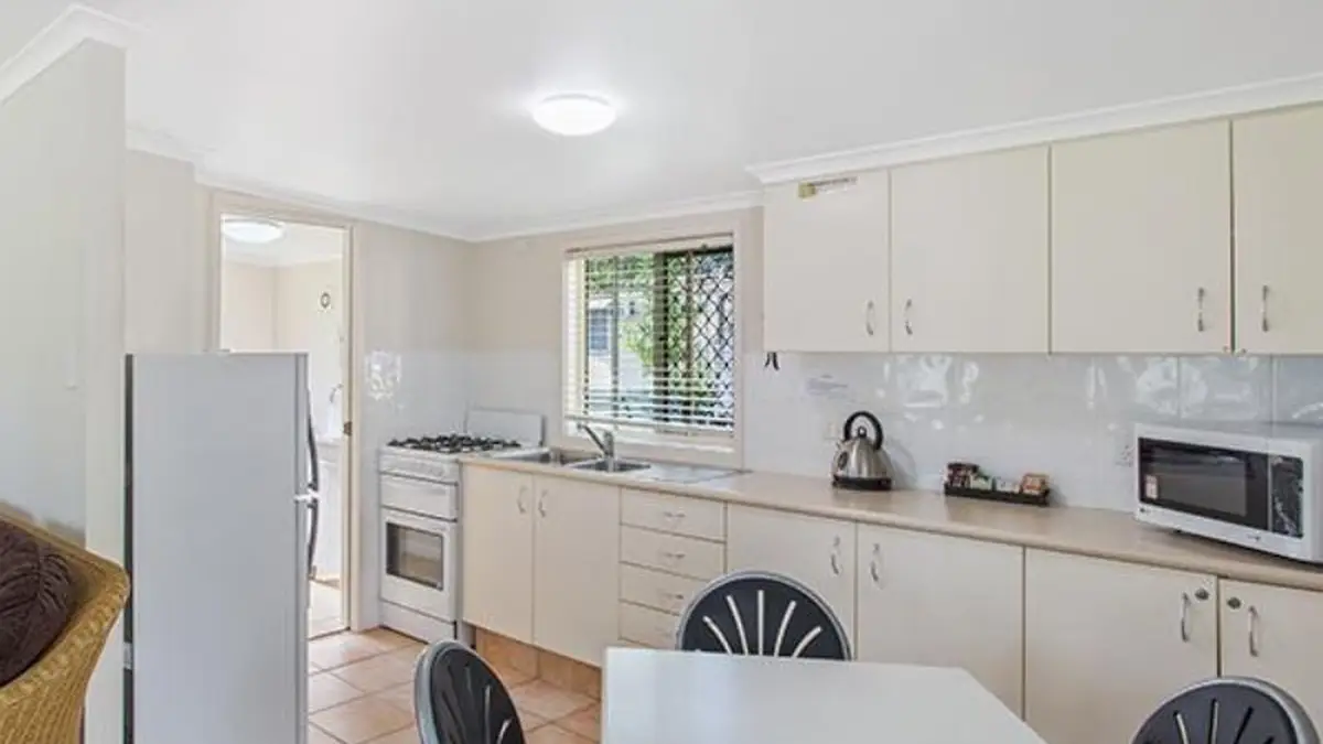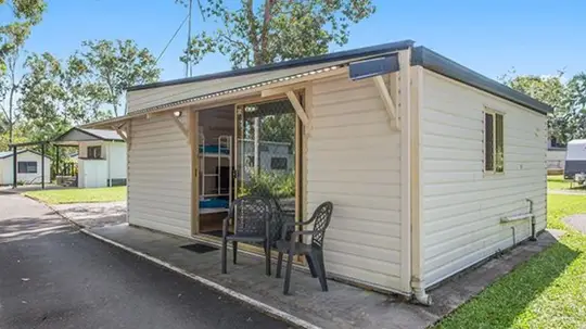 Ideal for couples or small families, this open-plan studio cabin sleeps up to four guests with a queen bed and single bunks. It features a convenient kitchenette, air conditioning, and a comfortable living area with TV. A great base to relax after a day of exploring, with all essentials close at hand.