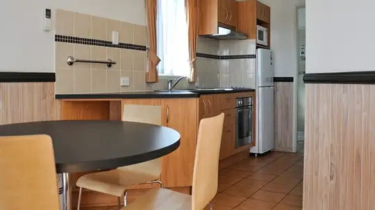 2 bedrooms 1 Queen bed, 2 x Single beds, Full kitchen, Bathroom, TV and Air-Conditioning. Linen provided.