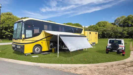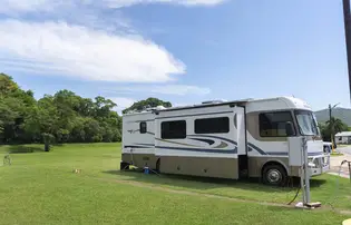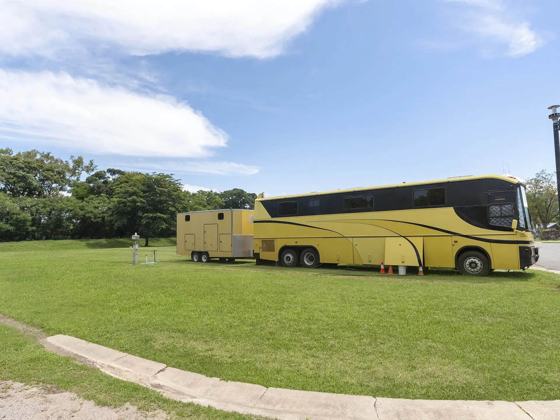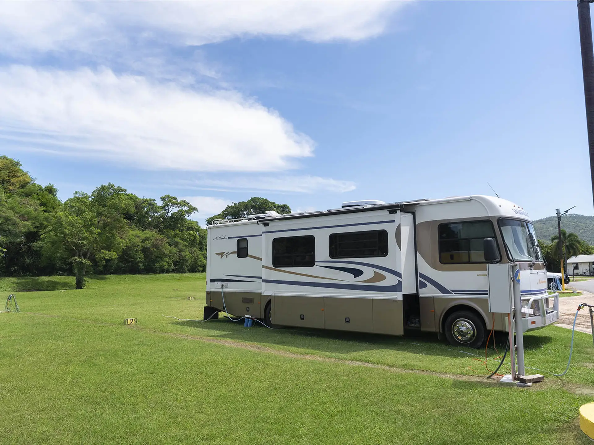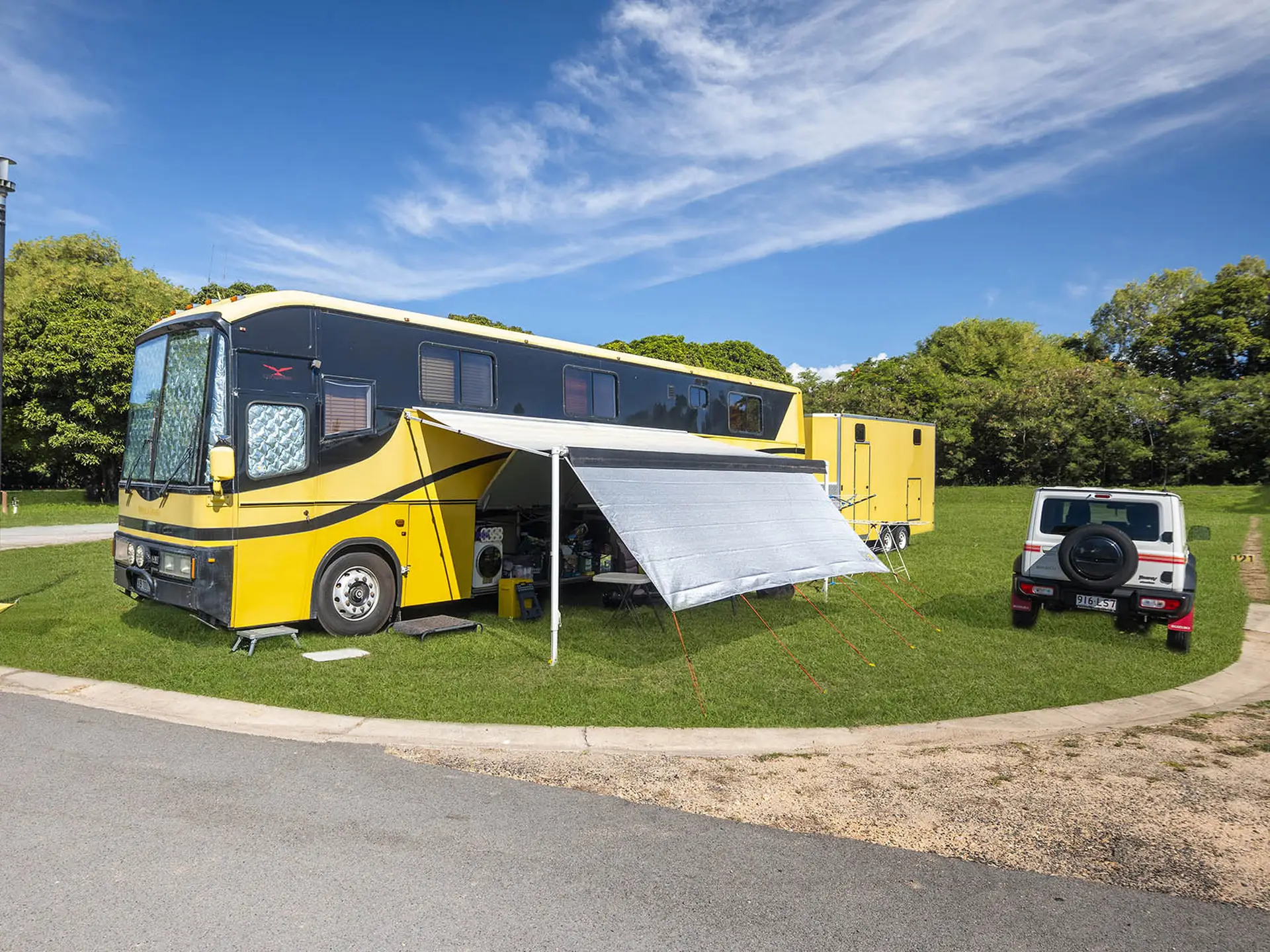 These spacious powered grass sites are ideal for large setups including fifth wheelers and buses. Located in a quiet part of the park, they’re close to two amenities blocks with laundry, shaded communal areas and a short stroll to the salt water pool. Pets are welcome and sites are available year-round.