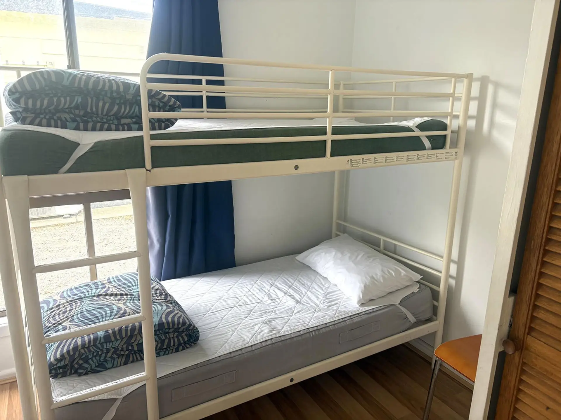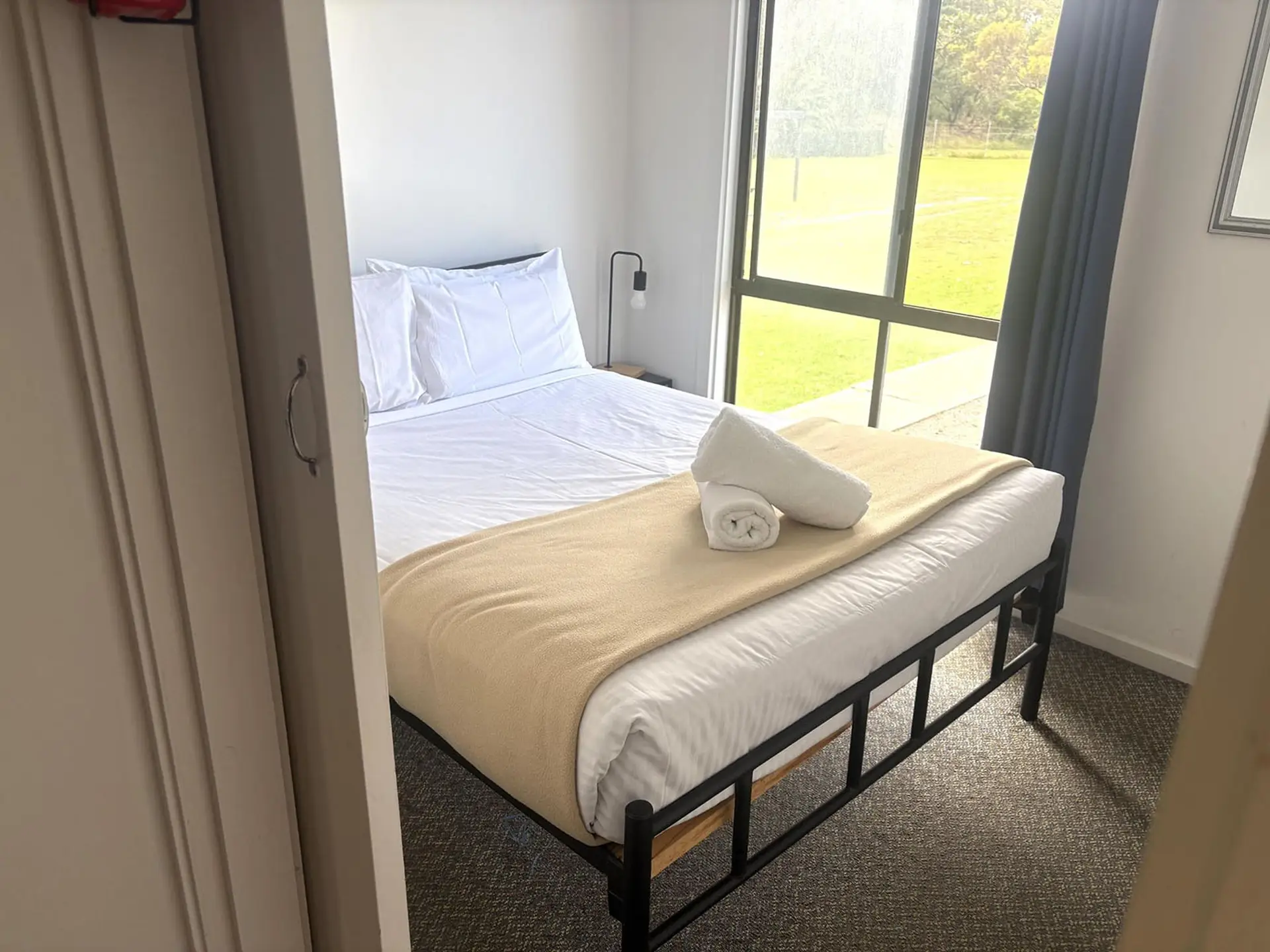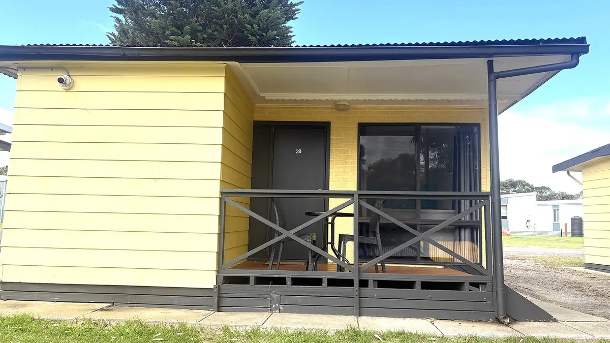 This comfortable two-bedroom cabin is perfect for families, sleeping up to four with a queen bed or double bed and one set of bunks. It features a full kitchen with electric oven, cooktop, microwave, and fridge. Enjoy air-conditioned comfort in the lounge and dining areas, or relax outside on the patio with outdoor seating. Located in a quiet, grassy setting near park amenities, it's an ideal base for a laid-back coastal getaway.