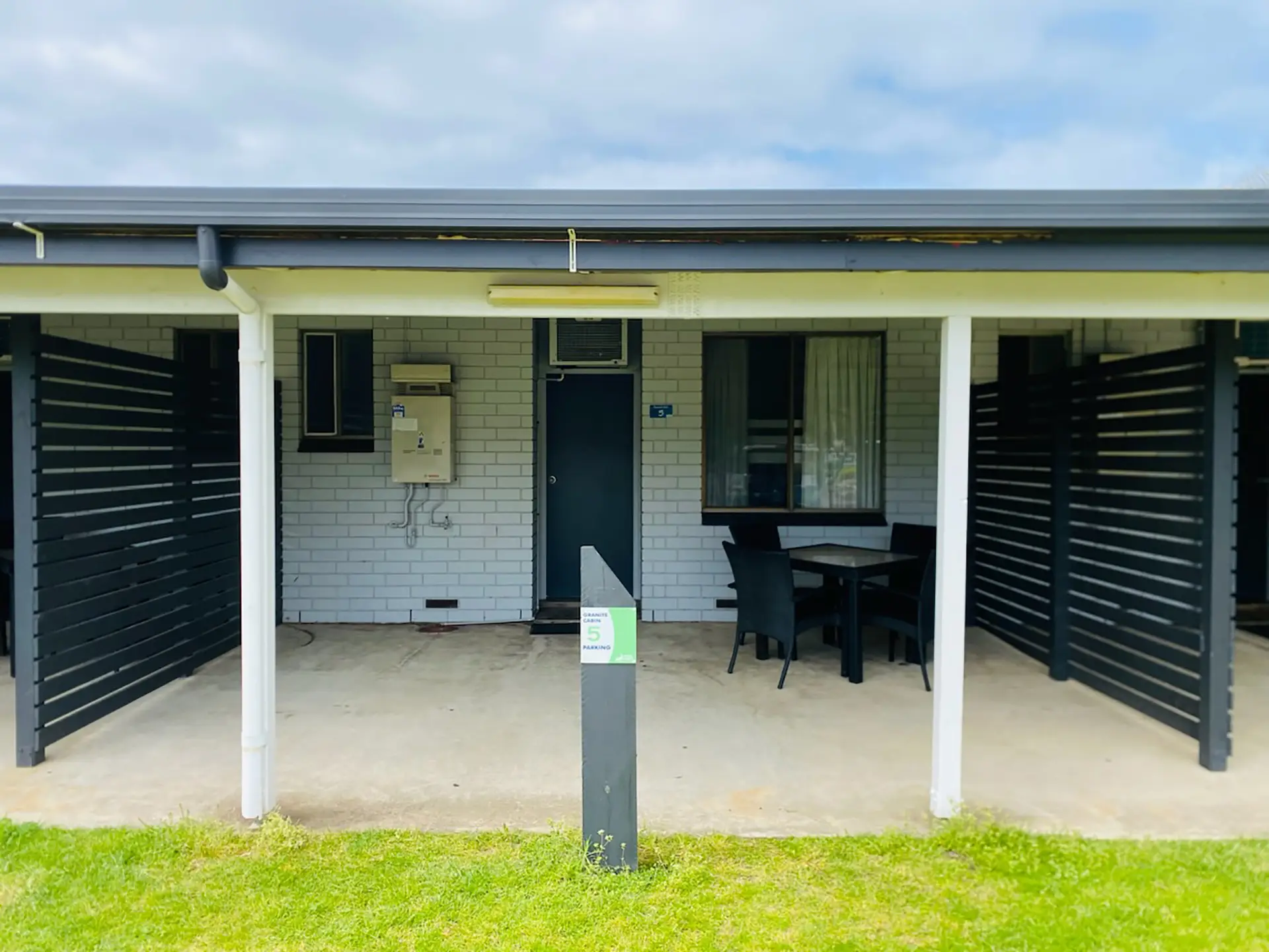 Designed for families, this two-bedroom motel unit sleeps up to five with a queen bed and a bunk featuring a double below and single above. It includes a private bathroom, air conditioning, and a kitchenette with electric oven, cooktop, full electric oven, microwave, and full-size fridge. Relax in the open-plan dining area with TV or step outside to the patio. A great option for comfortable and convenient coastal accommodation.