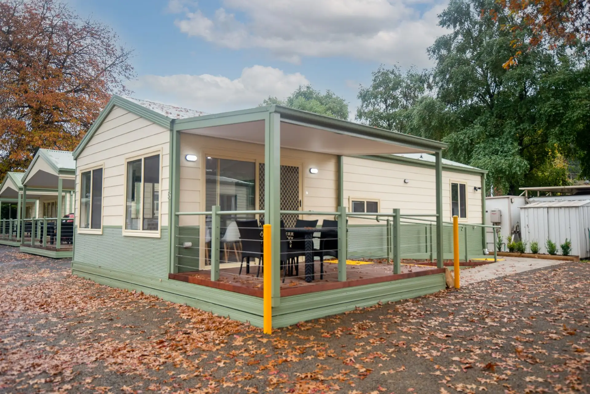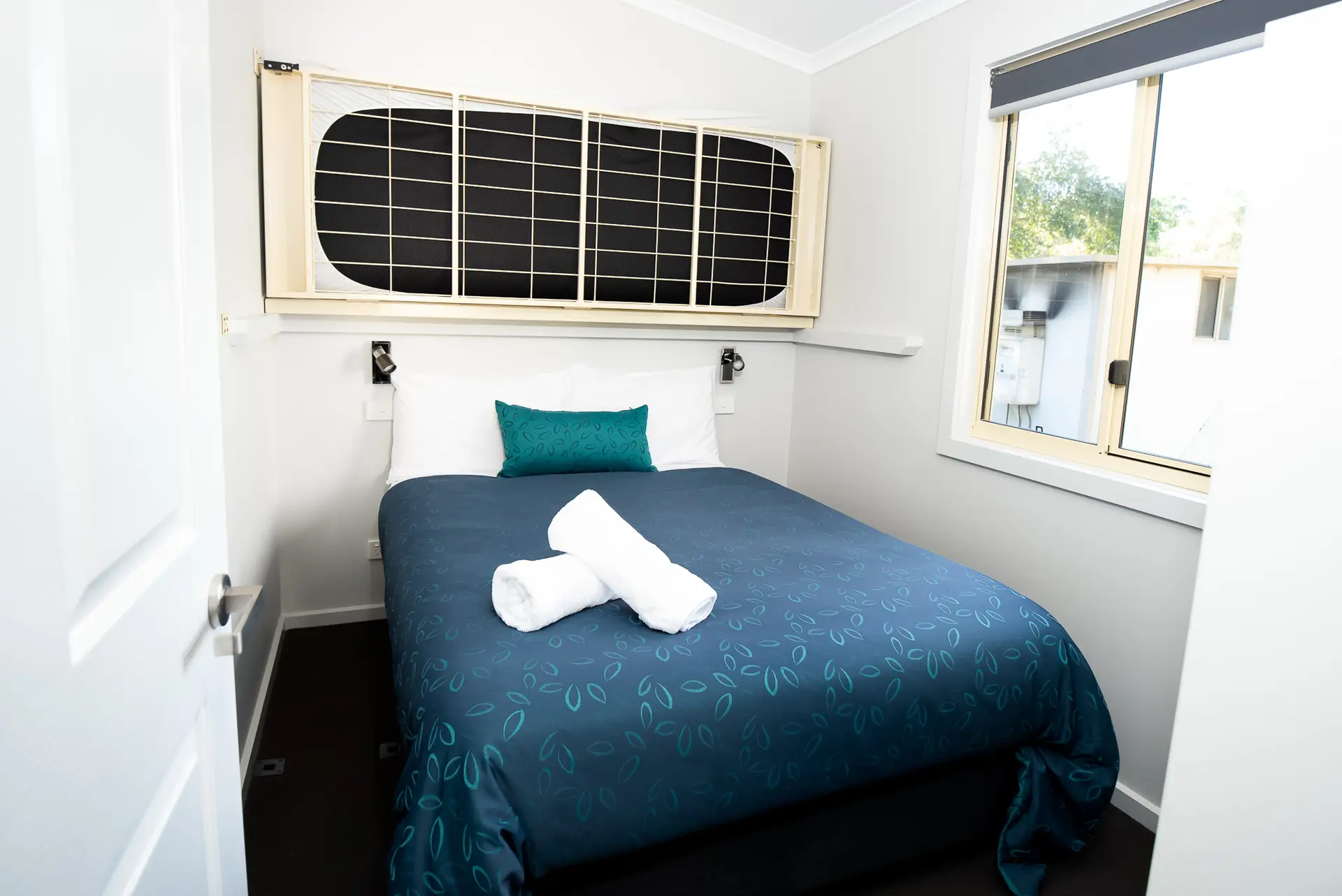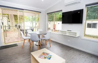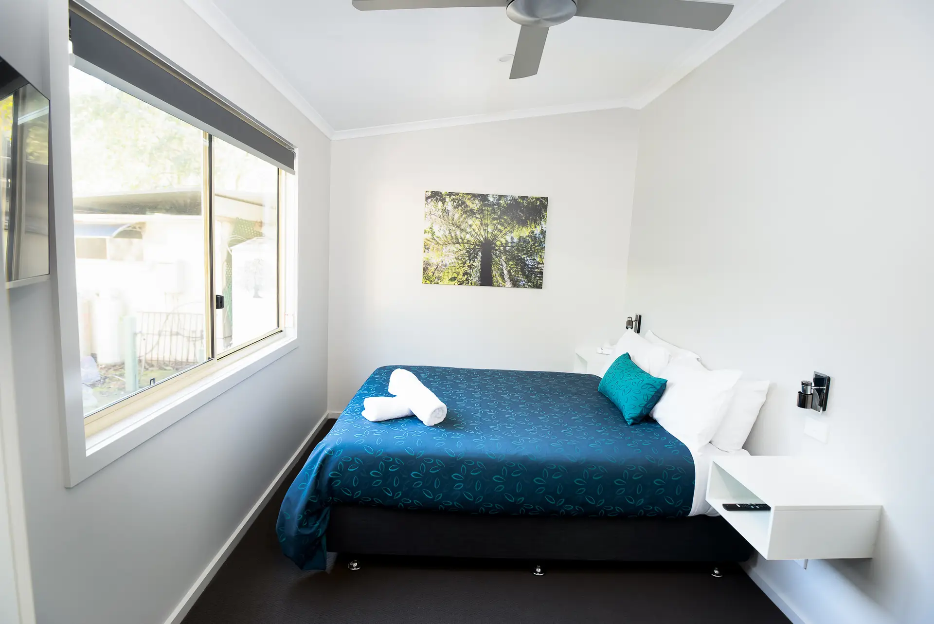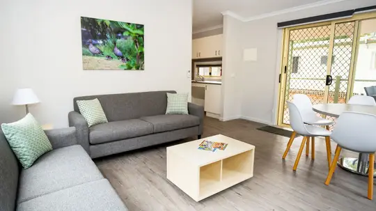 Comfortable, spacious, and purpose-built for accessibility, this villa sleeps up to 5 guests with a queen bed in the main bedroom and a single over double bunk in the second. A wheelchair-friendly ramp provides easy access to the villa, which features a fully accessible bathroom with grab rails and a shower chair available on request. Enjoy open-plan living and dining with TV, sofa and air-coinditioning, plus a full kitchen with gas stovetop, electric oven, microwave, and full-size fridge. The private deck offers a peaceful spot to unwind. All linen is provided for a truly stress-free stay.