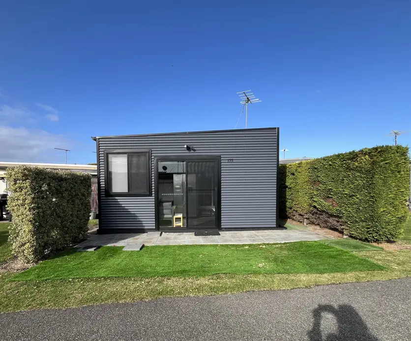 Step into a beautifully modern cabin that blends comfort, style, and a touch of coastal indulgence. With two well-designed bedrooms, a sleek kitchen, and a generous front verandah, this retreat sets the scene for relaxed weekends and long summer stays. Everything feels fresh, calm, and wonderfully low-maintenance — a perfect match for anyone wanting lifestyle over labour.