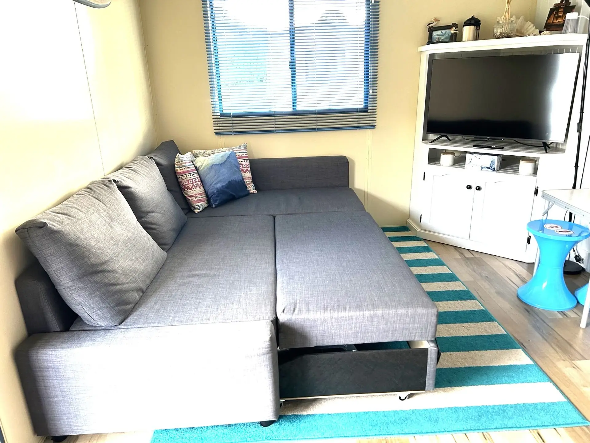 - Comes fully equipped with TV, TV unit, lounge, and more!