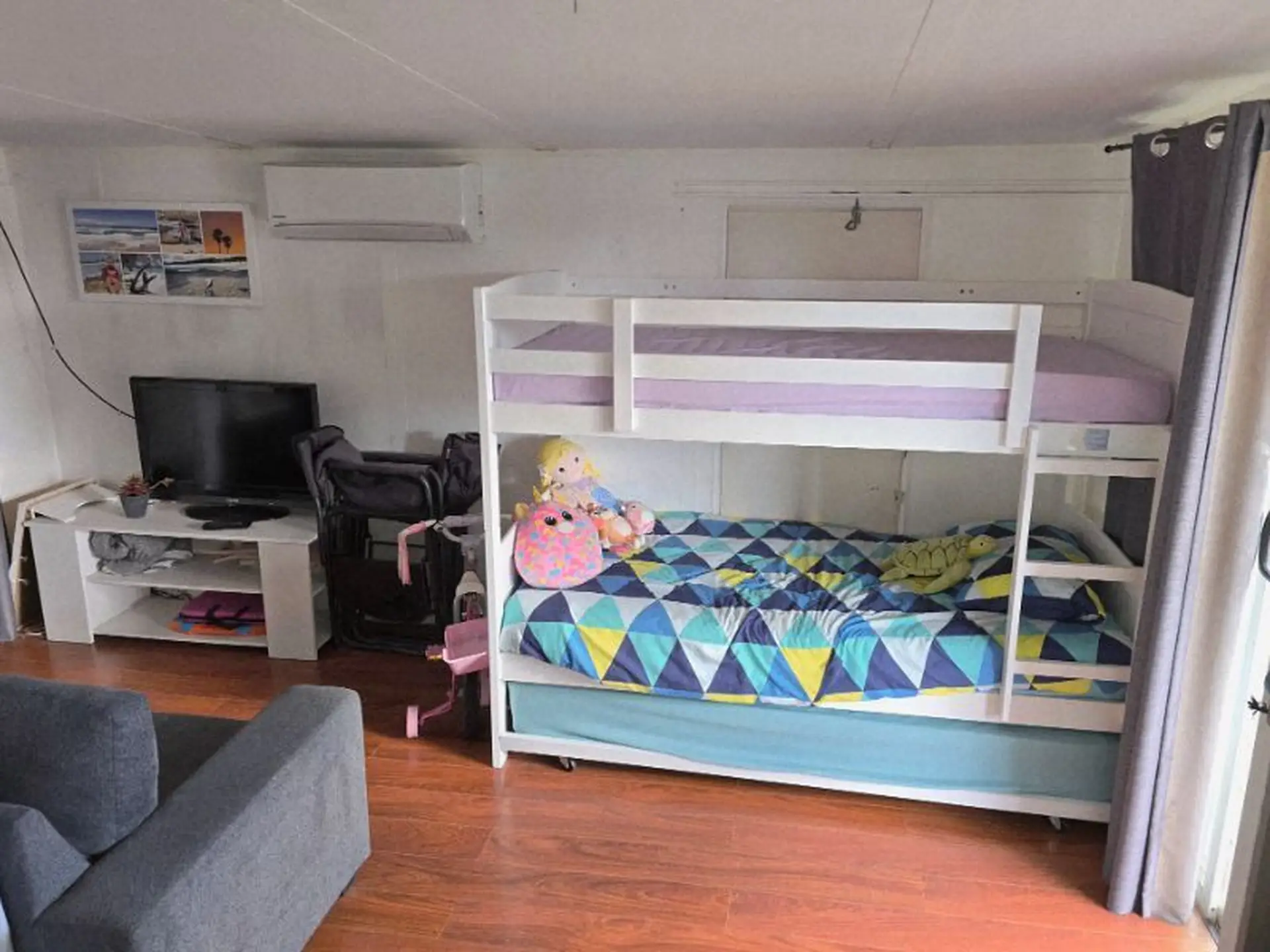 Ideal for couples or small families, this van offers everything you need for a comfortable coastal getaway. Inside, you’ll find a main bedroom, bunk beds for the kids or guests, a private toilet, and a well-equipped kitchen with everything you need to cook up a relaxed holiday meal. The air conditioning keeps the space cool on hot summer days, and the front verandah is perfect for enjoying your morning coffee or unwinding after a day at the beach.