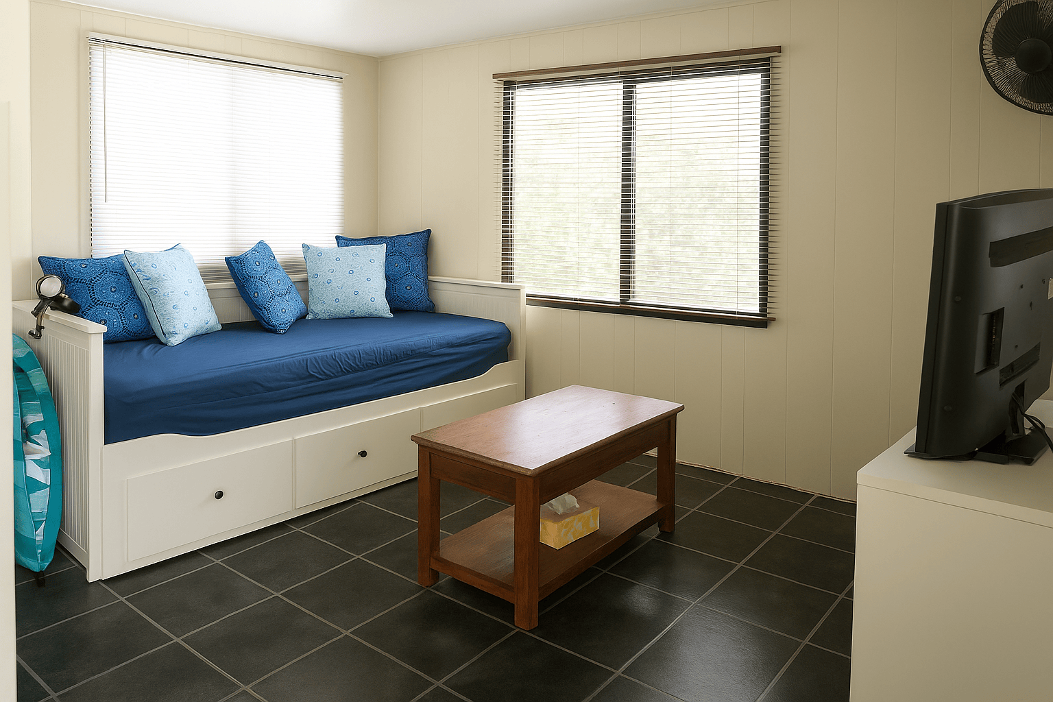 · Bunk beds plus a king-size pull-out sofa bed