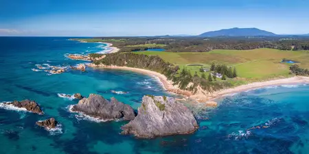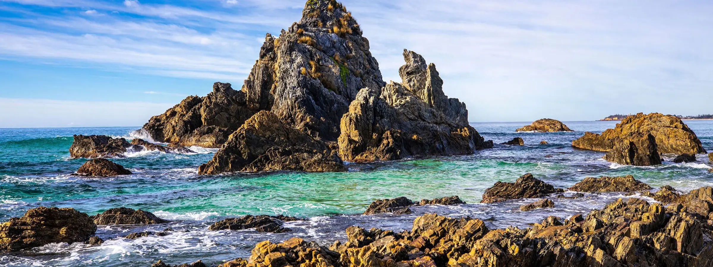 Towering sea stacks rise from Surf Beach like natural sculptures, shaped by millions of years of waves and time. These are the Glasshouse Rocks, and they date back over 400 million years. Nearby, around Bar Rock Lookout and Australia Rock, you’ll find strange, rounded lava shapes, known as pillow lava, formed when underwater volcanoes erupted eons ago.