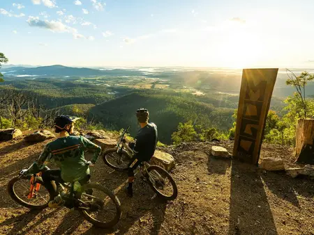 The Corn Trail is one of the region’s most iconic rides — a historic bridle track that plunges dramatically through lush escarpment forest. Expect steep switchbacks, loose rocky chutes, and the unmistakable scent of eucalyptus as you carve through cool, shaded gullies. It’s physically demanding but incredibly rewarding, with sweeping wilderness views that feel worlds away from the coast.