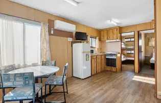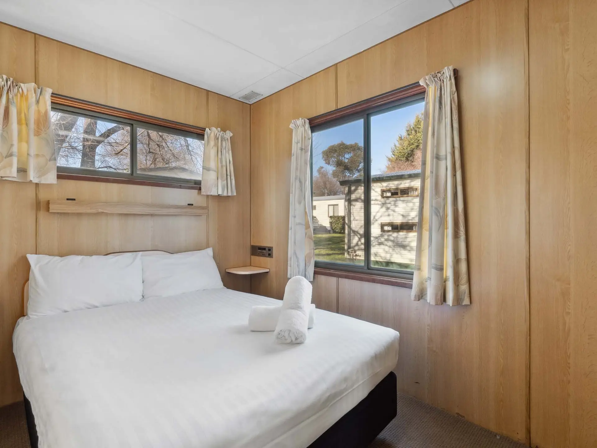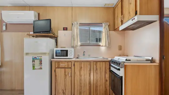 This pet-friendly two-bedroom cabin is ideal for families, sleeping up to six with a double bed and two sets of bunk beds. Enjoy the convenience of a full-size fridge, microwave, gas stovetop, and reverse cycle air conditioning. TV and on-site parking add to the ease of your stay.