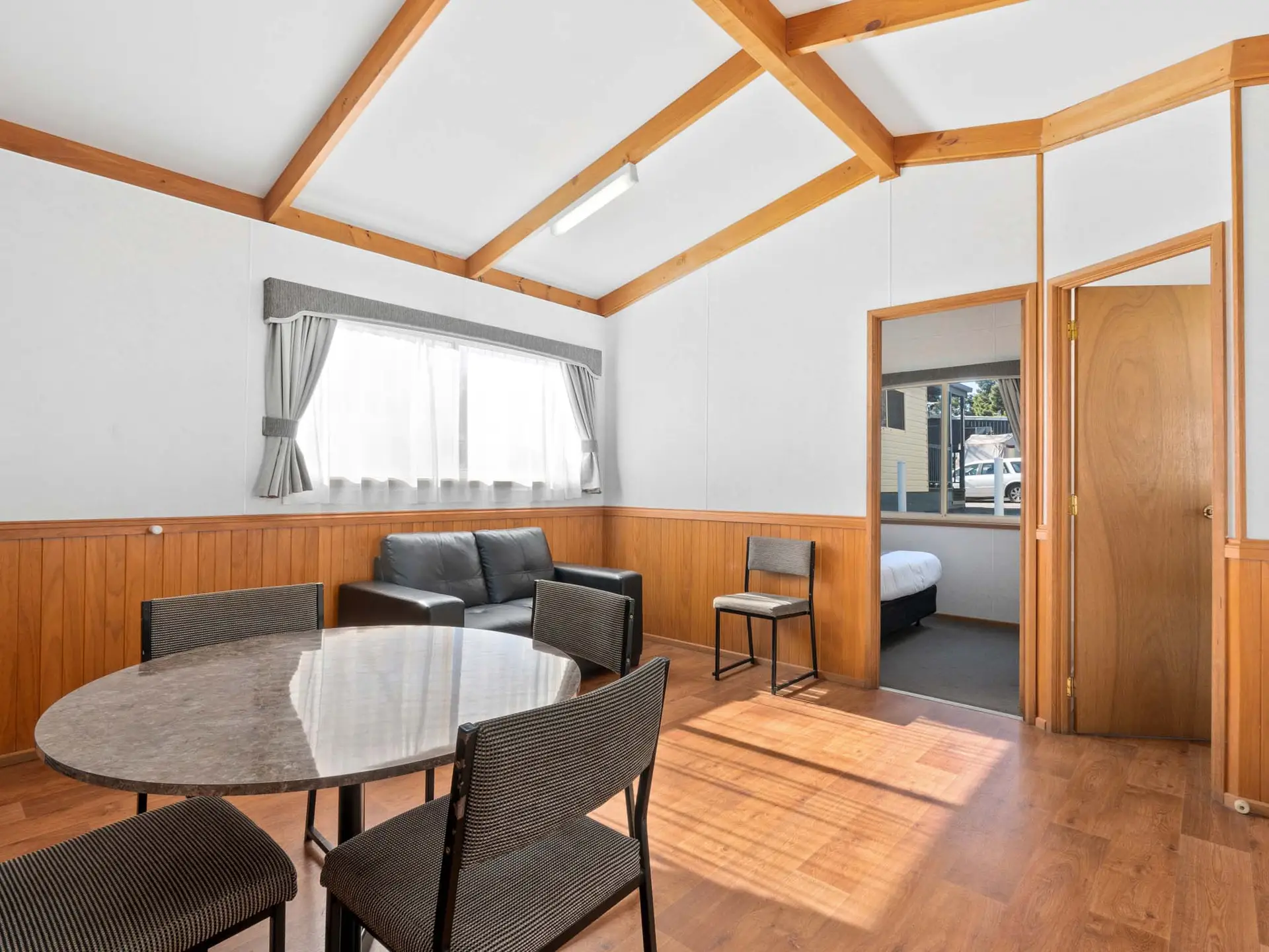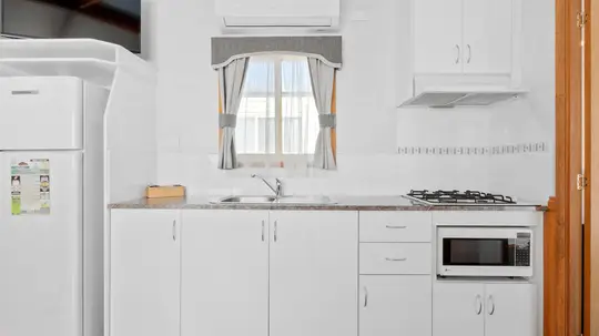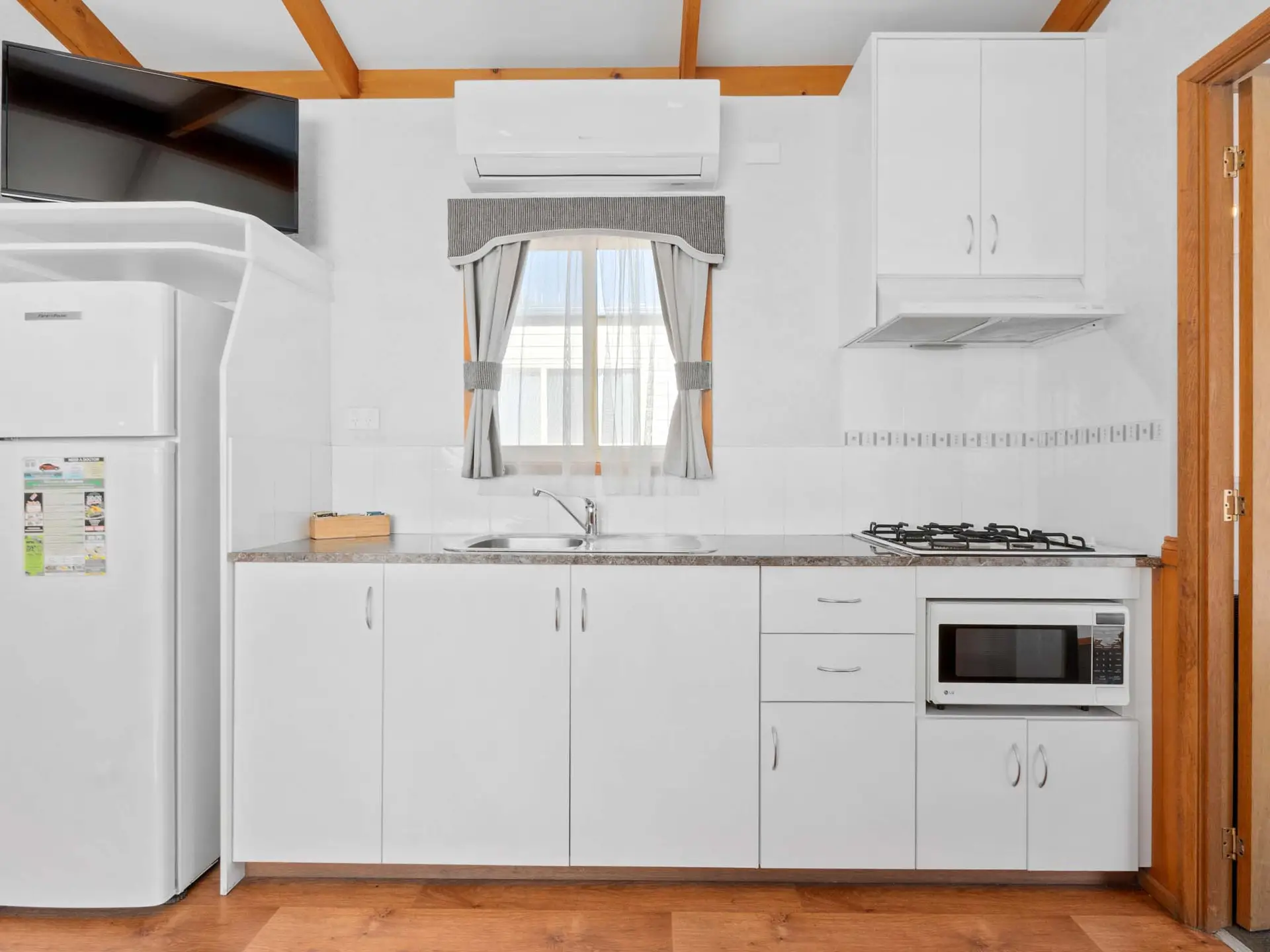 This two-bedroom cabin offers comfortable accommodation for up to four guests with one queen bed and one double bed. Enjoy the convenience of a bar fridge, microwave, and gas stovetop, along with reverse cycle air conditioning. A private balcony provides a space to relax outdoors, with parking just steps from your door.