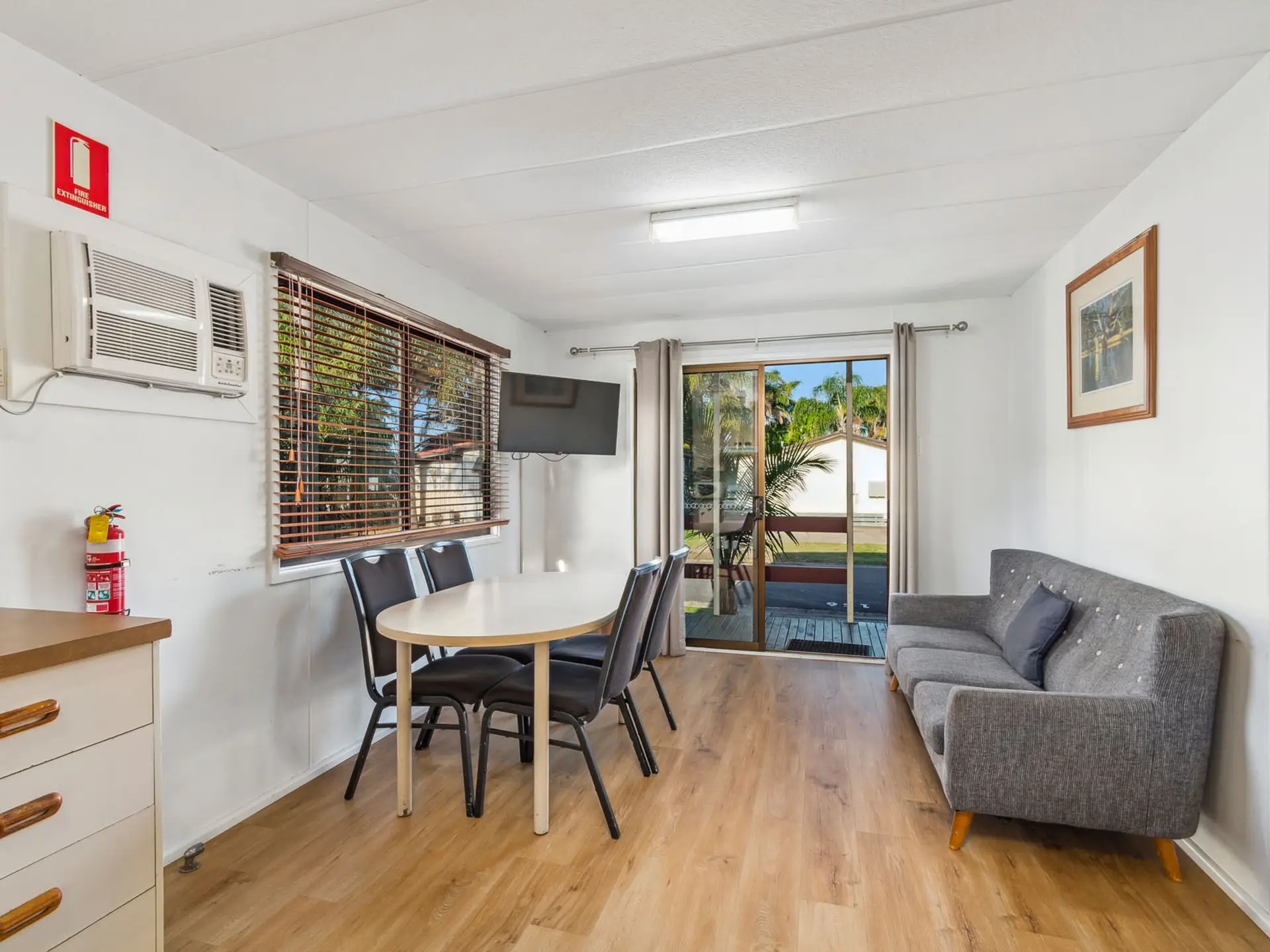 This pet-friendly villa sleeps up to five across two bedrooms with one queen bed, one single bed, and a bunk. It includes a full kitchen, one bathroom, and a small verandah for outdoor seating. Located near the boat ramp, it's a practical choice for those visiting to fish, golf, or work locally. Air conditioning ensures a comfortable stay.