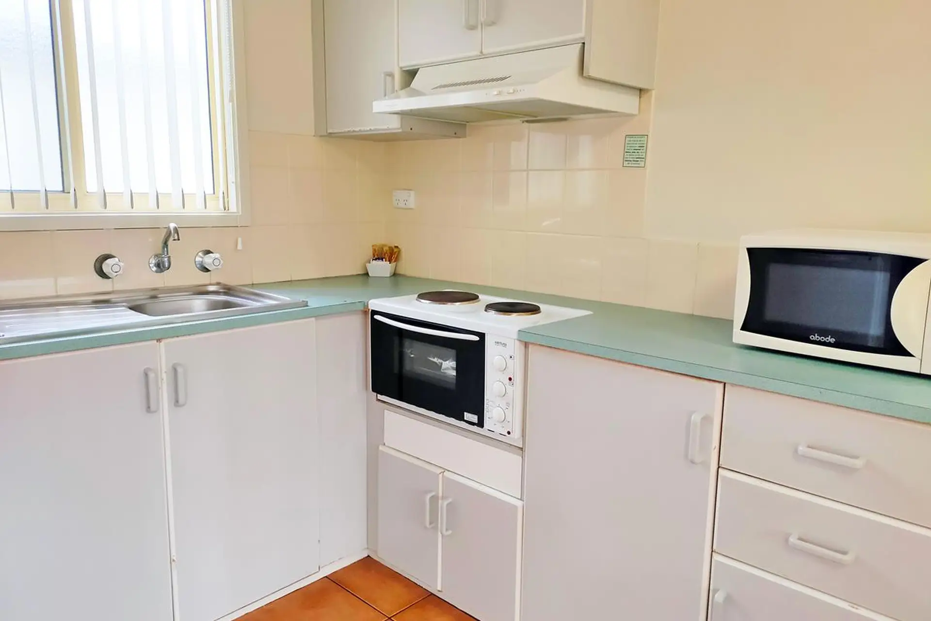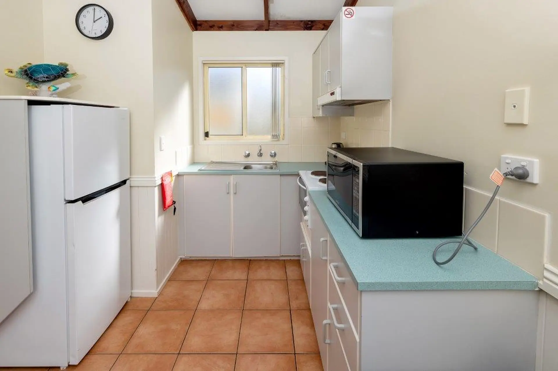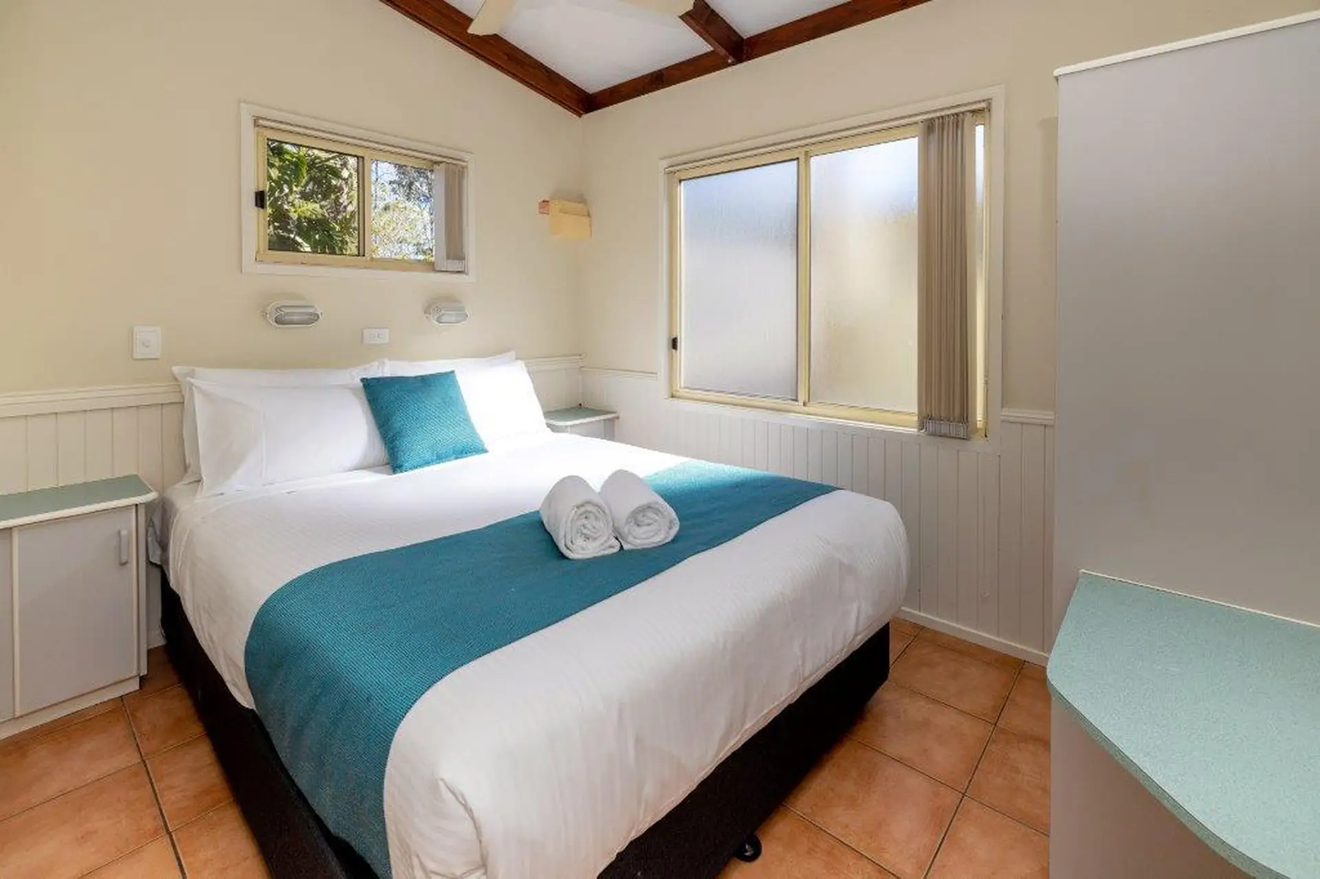 This pet-friendly two-bedroom cabin sleeps up to five with a queen bed and tri-bunk—perfect for families or friends. Enjoy a kitchenette, open living with TV, and fans and heating for comfort. Step out to the covered deck with outdoor seating and unwind with your furry companion. Affordable and welcoming, it’s a relaxed coastal base.
