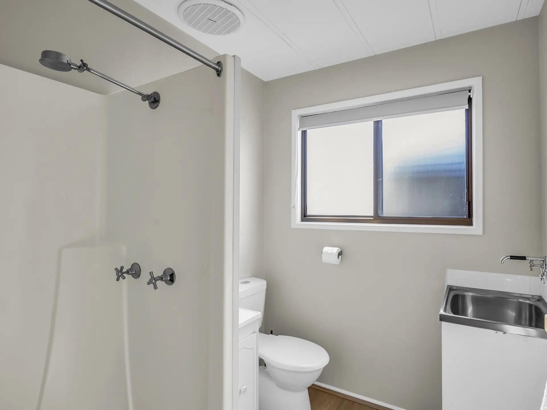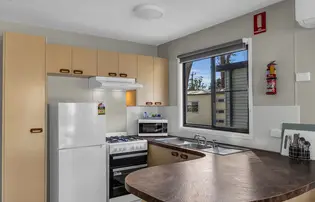 This two-bedroom cabin sleeps up to 4 guests with one queen bed and two single beds. It includes a private bathroom with a shower, toilet, and complimentary toiletries. Linen and towels are provided for all beds. The cabin features a comfortable living area with a sofa, TV, fan, and heating for your convenience. A kitchenette equipped with a microwave, toaster, and kettle makes it easy to prepare light meals. While there is no stovetop or oven, the cabin provides everything you need for a relaxed and comfortable stay.