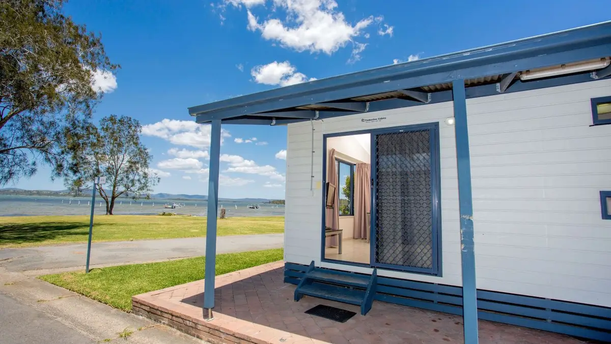Right on the lakefront, this cosy cabin is perfect for couples or small families, sleeping up to four with a queen bed and one bunk bed. The open-plan layout includes a kitchen with a microwave and fridge, plus air conditioning and a TV. Enjoy the view from your private deck and dine outside in the fresh air.