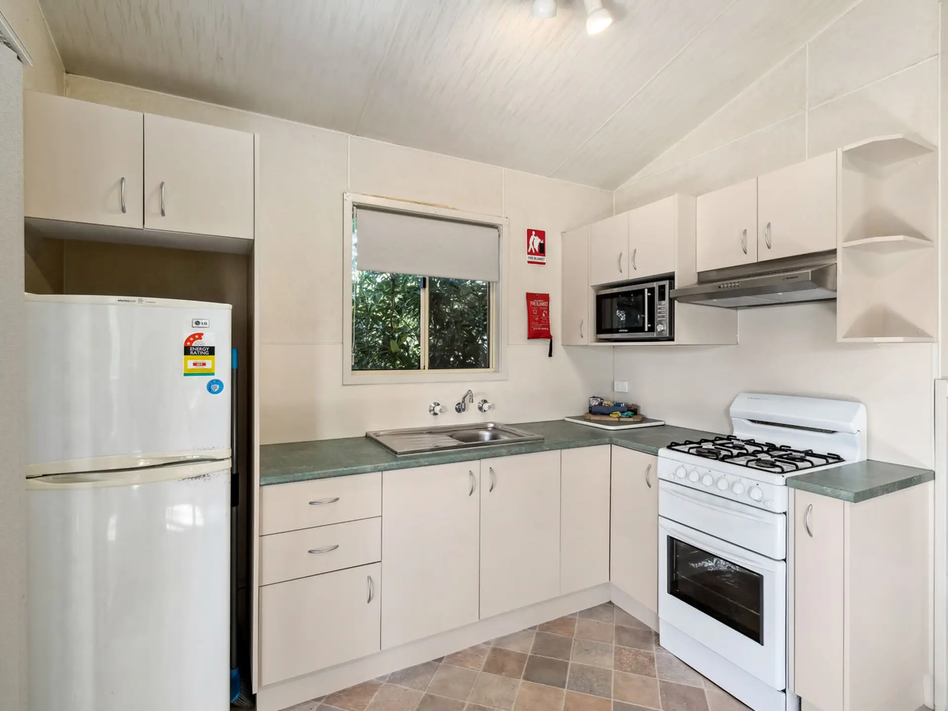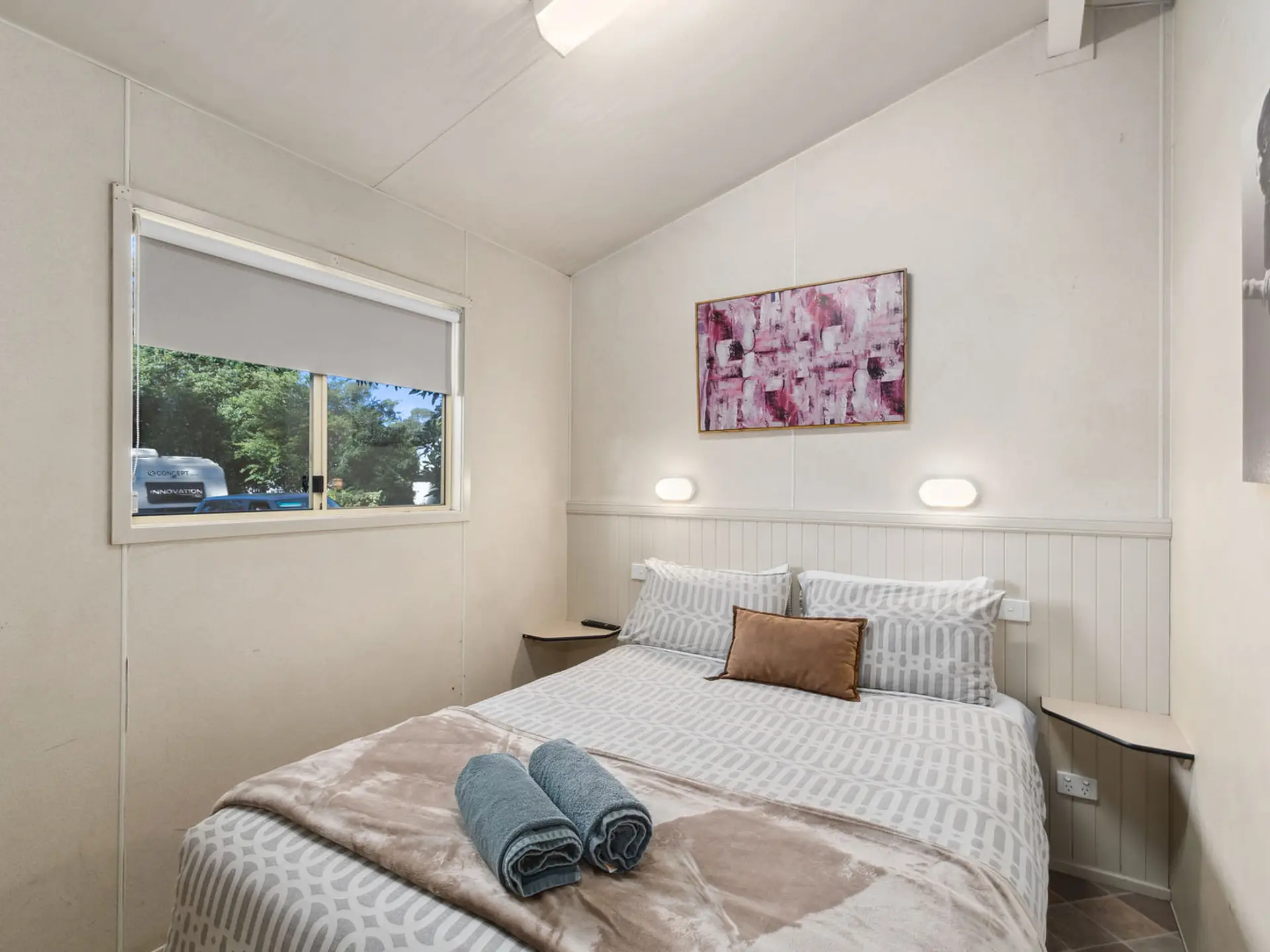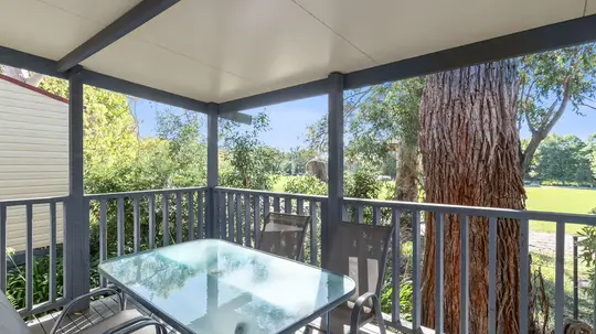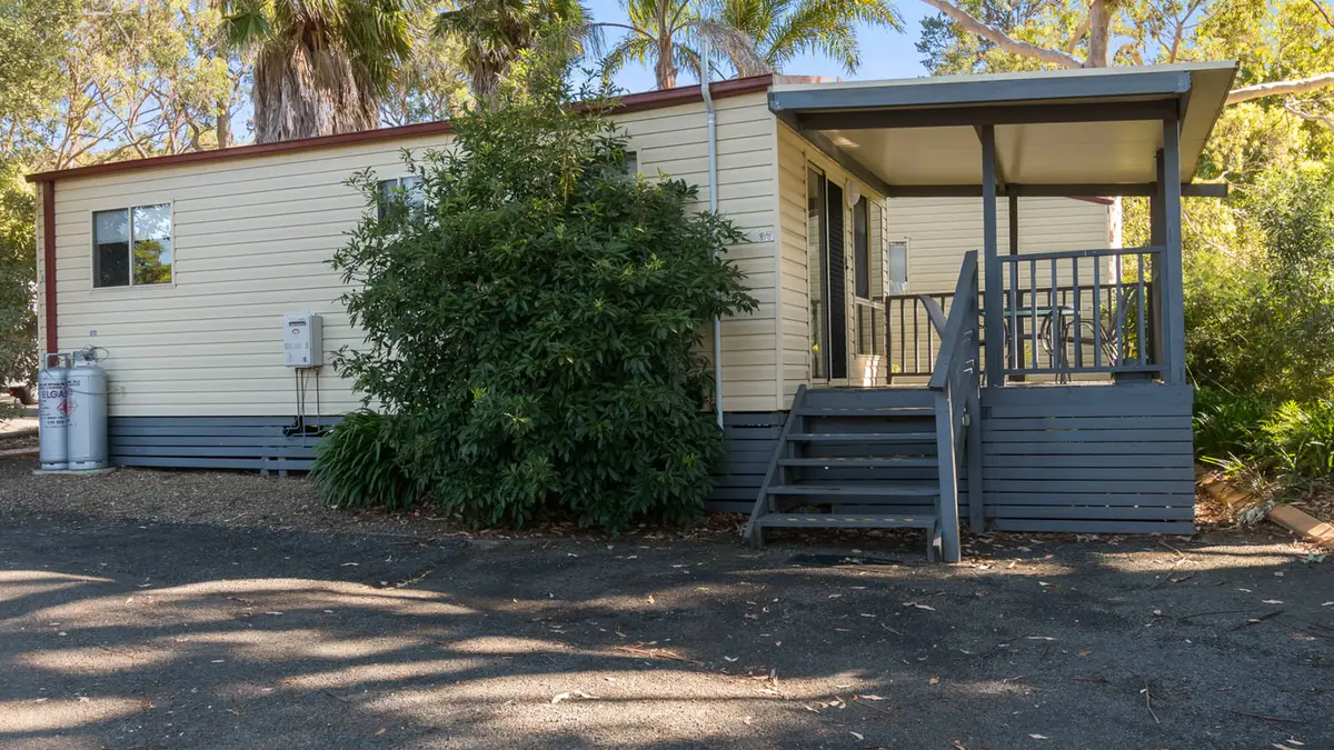 This pet-friendly two-bedroom cabin sleeps up to four guests with a double bed and a set of single bunk beds. It features a spacious open-plan living, dining, and kitchen area with a full-size fridge, gas cooktop, microwave, and electric oven. Relax on the private balcony and enjoy the peaceful surrounds, with reverse cycle air conditioning for added comfort.