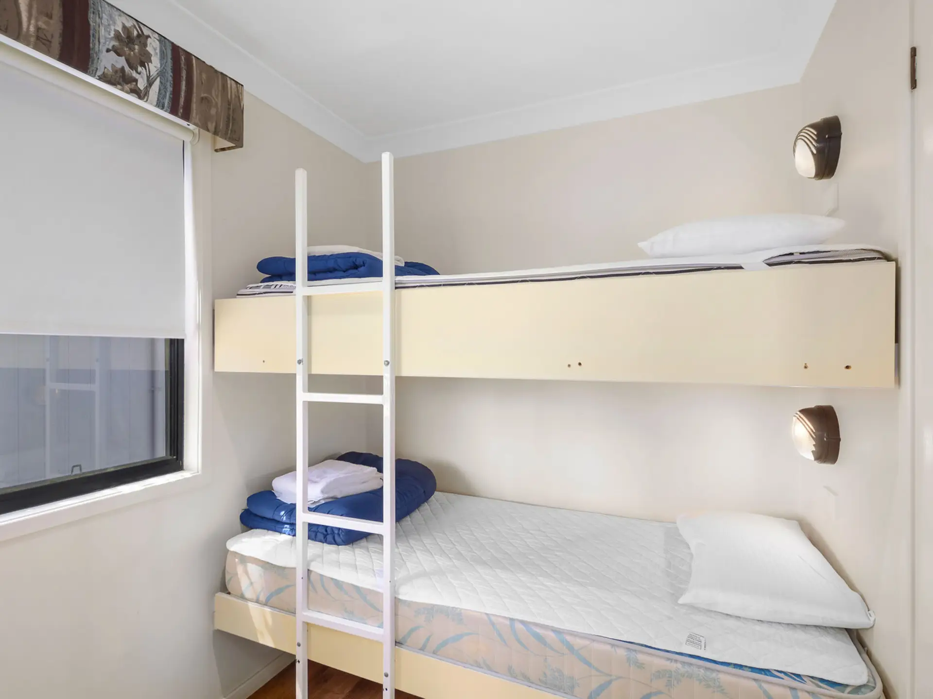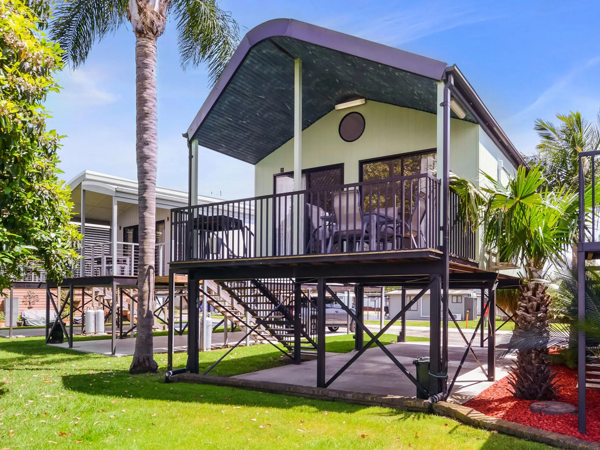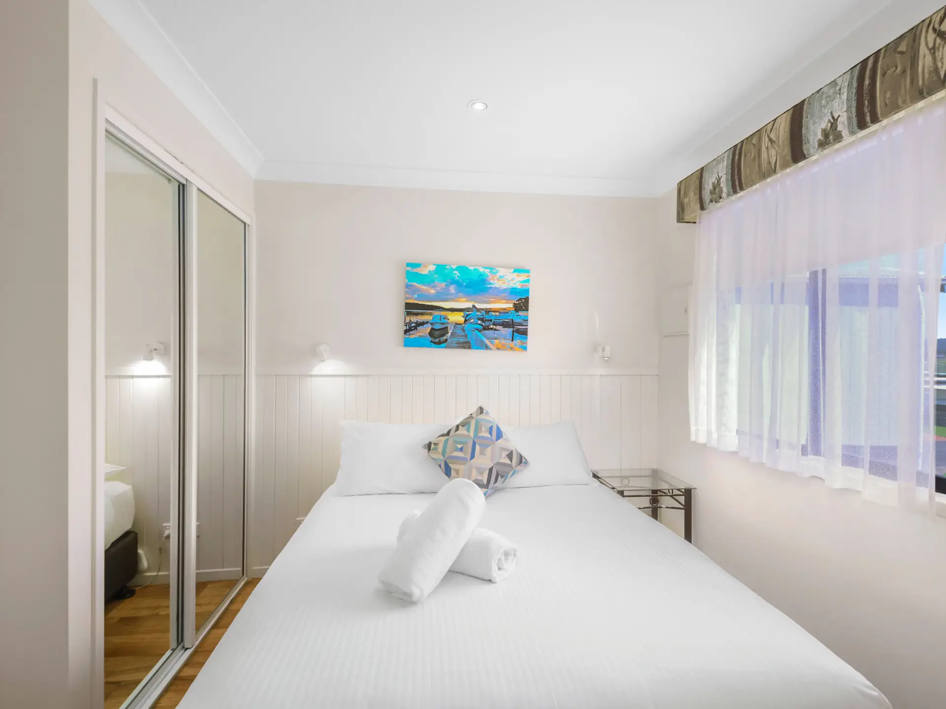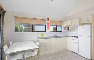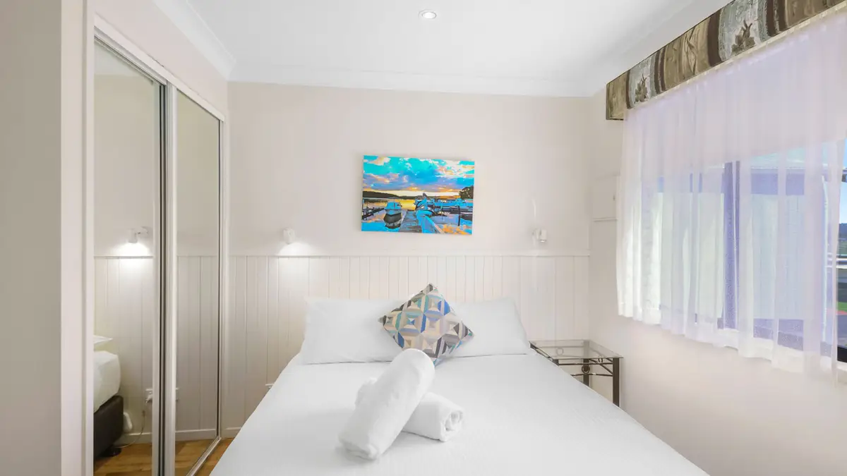 Wake up to stunning riverfront views in this stylish two-bedroom villa, perfect for up to four guests. The main bedroom features a queen bed, while the second offers two single bunk sets—great for families. Enjoy a fully equipped kitchen with gas oven, microwave, and full-size fridge. The open-plan living and dining area, private deck with outdoor setting, and air conditioning create a relaxed coastal retreat.