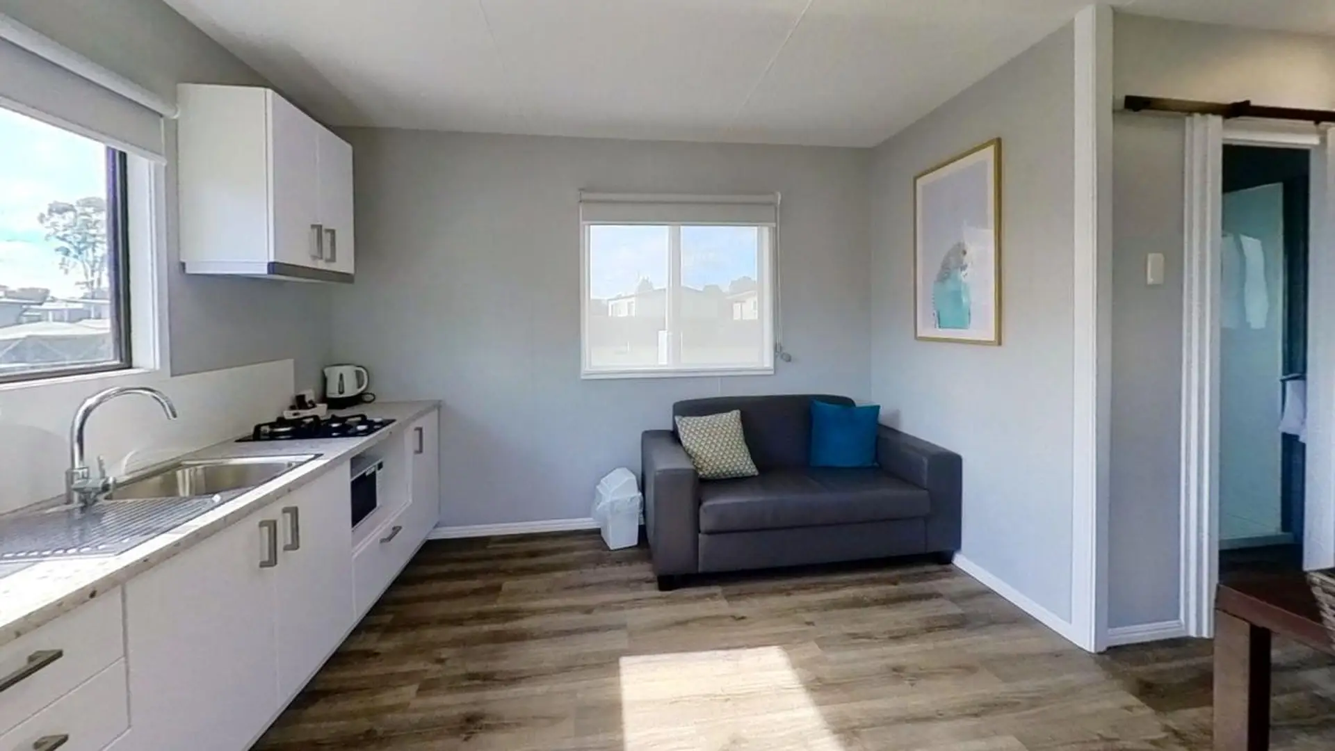 This pet-friendly one-bedroom cabin offers a comfortable base for two, featuring a double bed, private ensuite, air conditioning, and a TV. While simple in setup, it provides a cosy retreat to unwind after a day of exploring Mudgee with your four-legged friend.