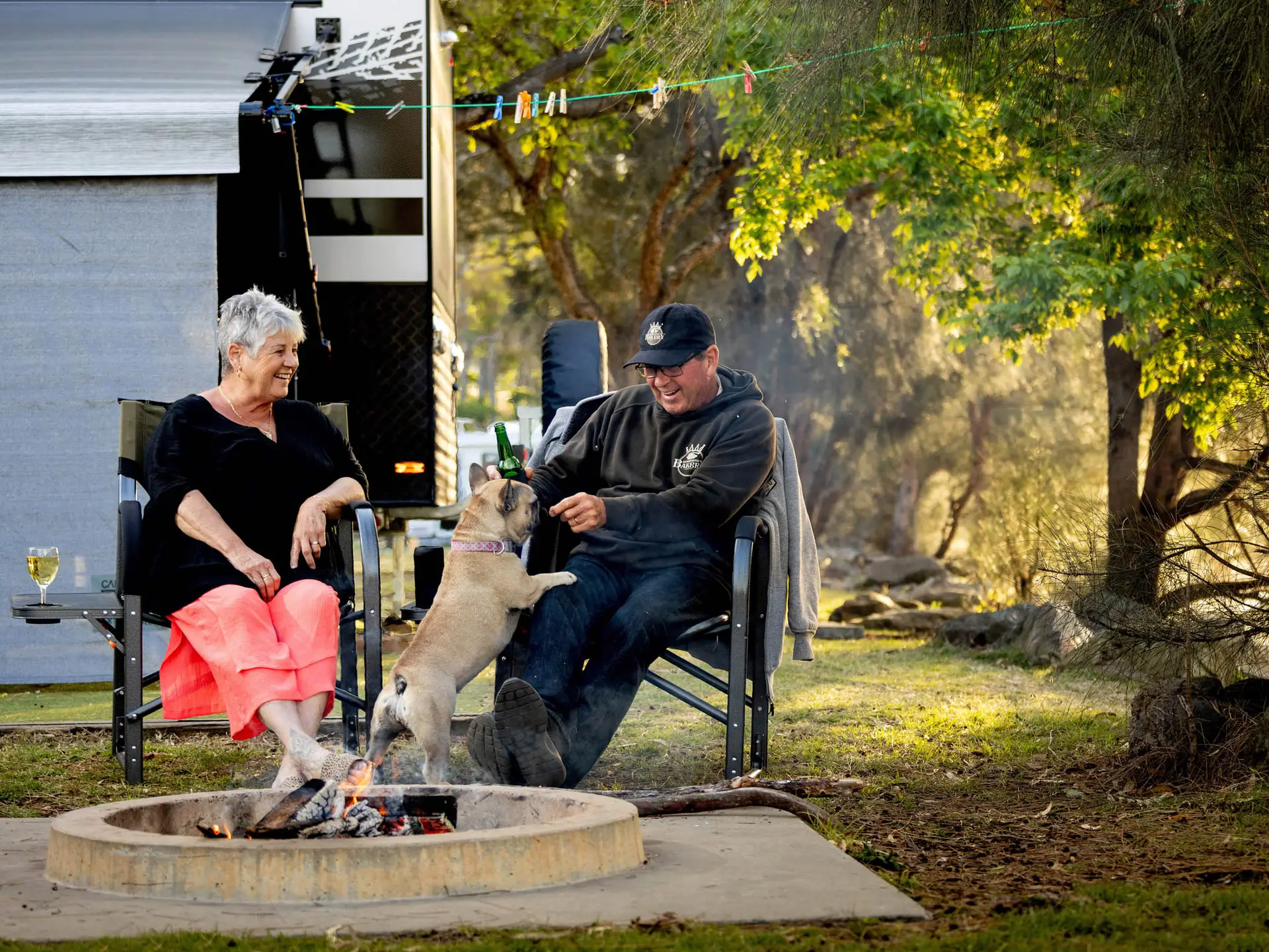 Offering grass or slab surfaces, these pet-friendly powered sites are close to the creek and park facilities. Fire pits make them perfect for evenings outdoors. Please note: No sullage disposal available at this site.