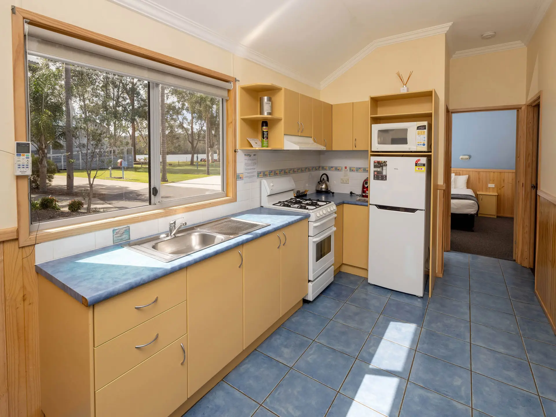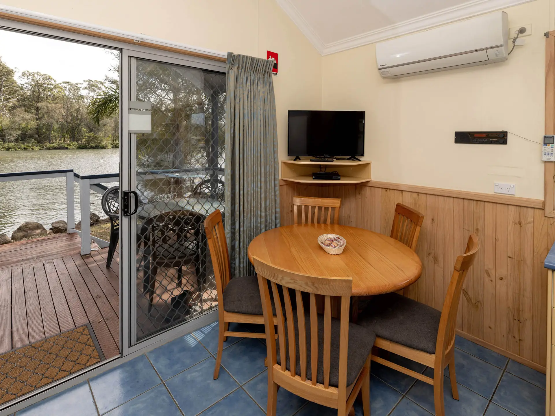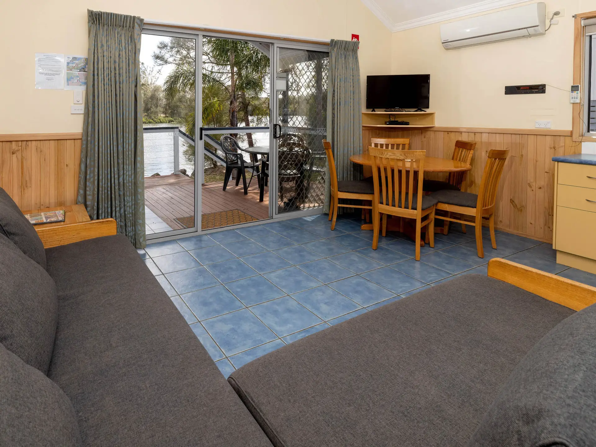 Set right by the river, this villa sleeps up to five with a double, bunk and single bed. It includes a self-contained kitchen, bathroom, and private deck with BBQ and dining set. A practical and scenic option for couples or families wanting to enjoy the Clyde River outlook.