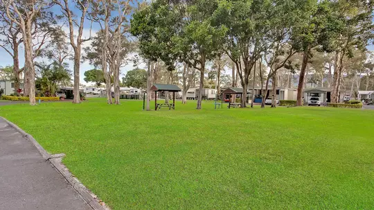 These grass powered sites suit caravans, campervans, motorhomes, and tents, with room for up to six guests. Set on level ground, each site includes power and water, with easy access to the amenities block, pool, camp kitchen, and BBQ facilities. Please note: No sullage disposal available at this site.
