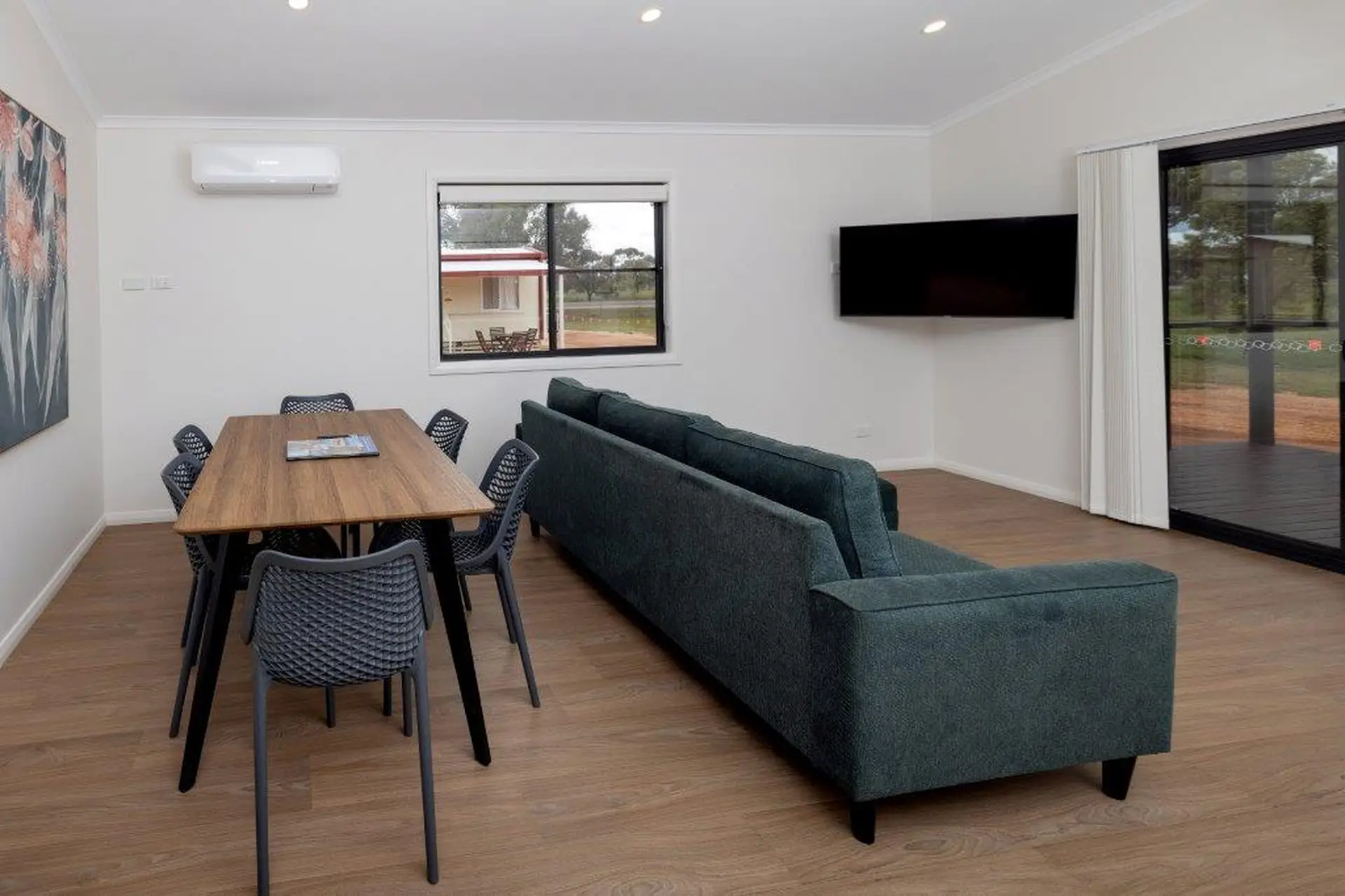 Enjoy premium comfort in this spacious three-bedroom villa, ideal for families or groups of up to six. The villa features two queen beds and a set of bunk beds, plus a full kitchen with oven, microwave, and large fridge. The open-plan living area leads to a private balcony with outdoor dining set—perfect for relaxing afternoons. Air conditioning and modern furnishings complete the experience.