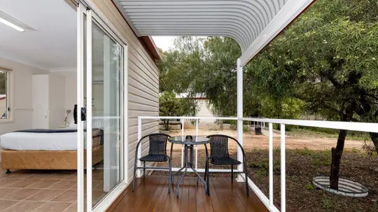 This studio is perfect for couples or solo travellers, offering a queen bed in an open-plan layout. The kitchenette includes a cooktop, microwave, and fridge, while air conditioning keeps things comfortable. Step outside to your private balcony with outdoor seating—an ideal spot to relax and enjoy the fresh air.