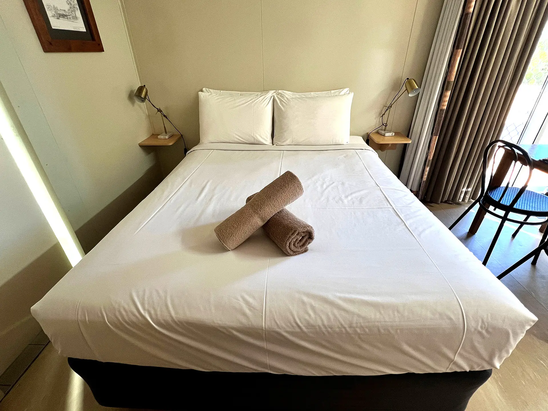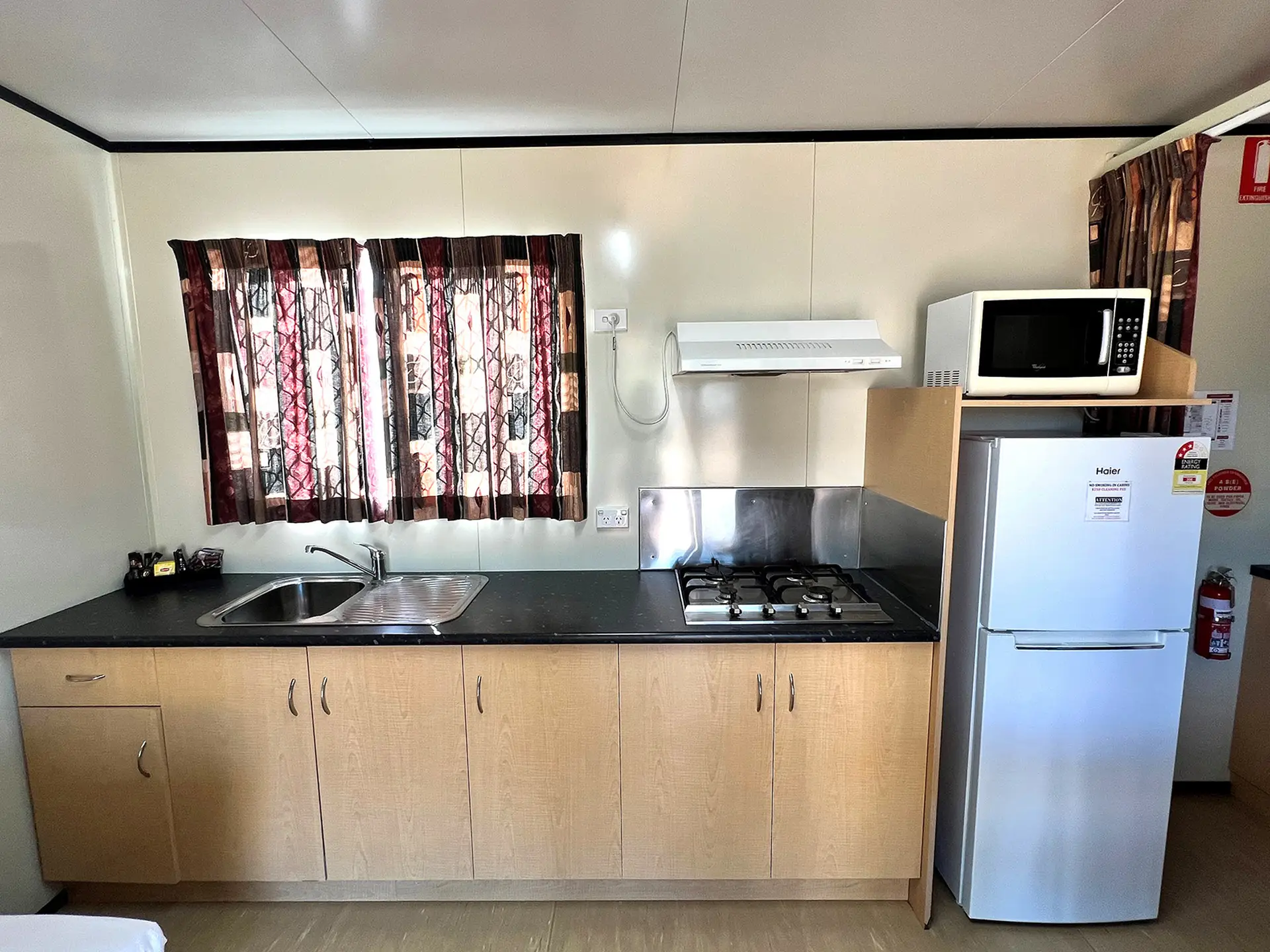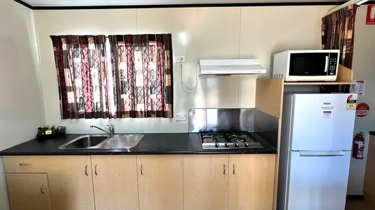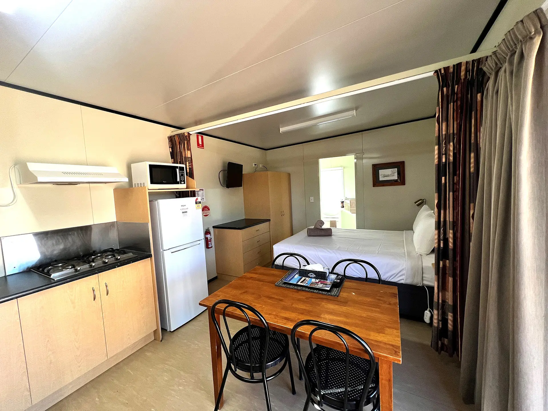 This studio offers a comfortable stay for singles or couples, featuring a queen bed and one single bed in an open-plan layout. It includes a kitchenette with cooktop, microwave, and fridge, plus air conditioning and a TV for convenience. Enjoy all the essentials for a relaxed and easy getaway.