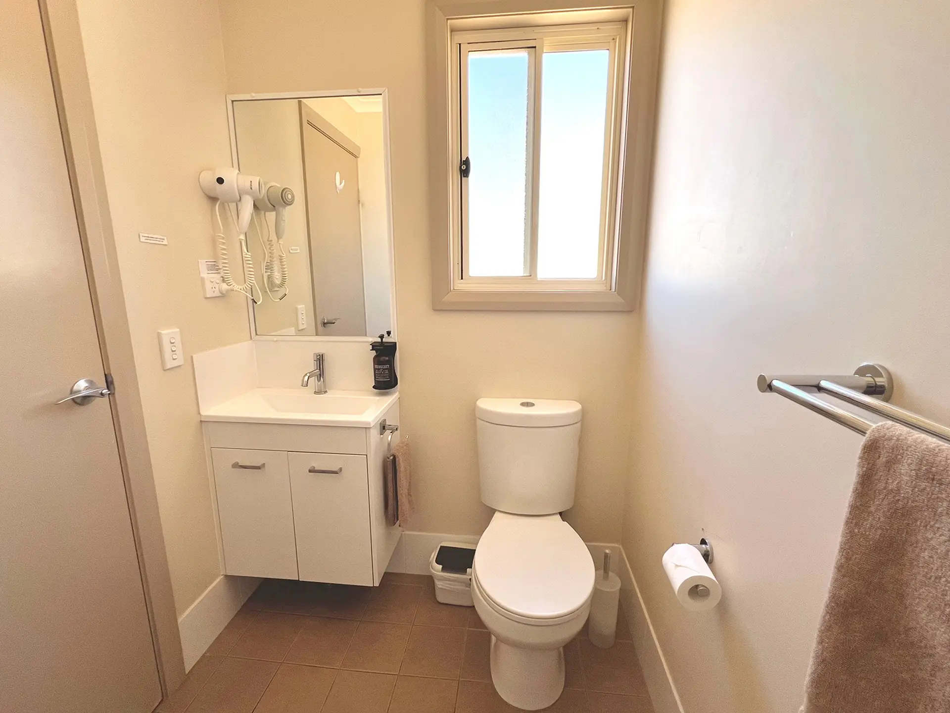 Designed for couples or solo travellers, this open-plan studio features a queen bed and a well-equipped kitchenette with cooktop, microwave, and fridge. The space is fully air conditioned and includes a dining area, lounge area, and TV for relaxed evenings. Step outside to a private patio with seating, perfect for morning coffee or an evening unwind.