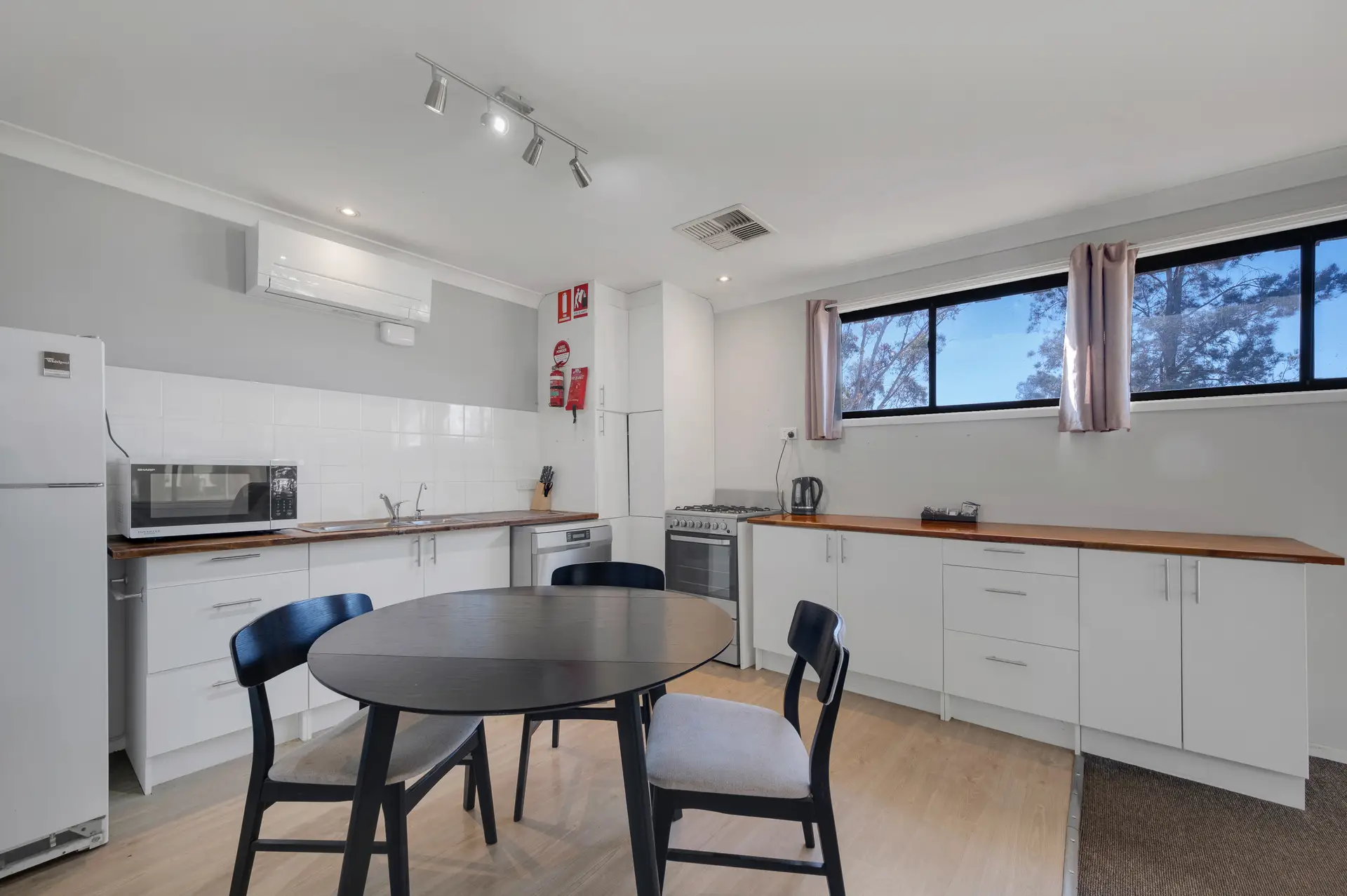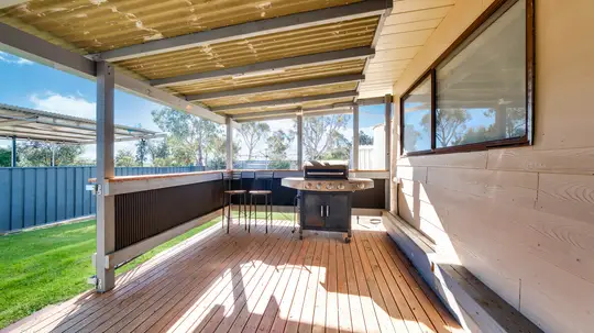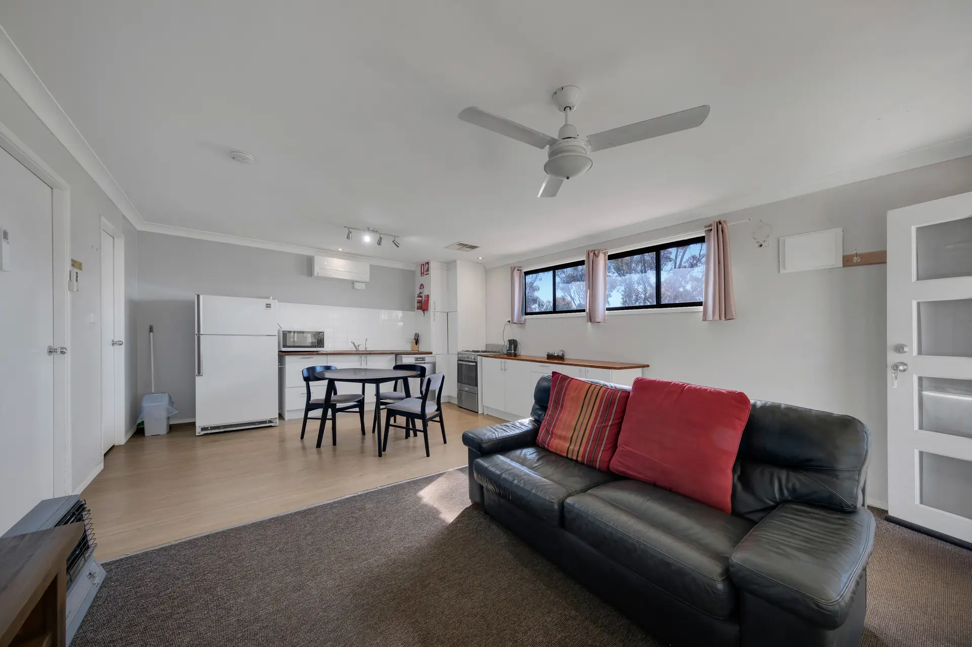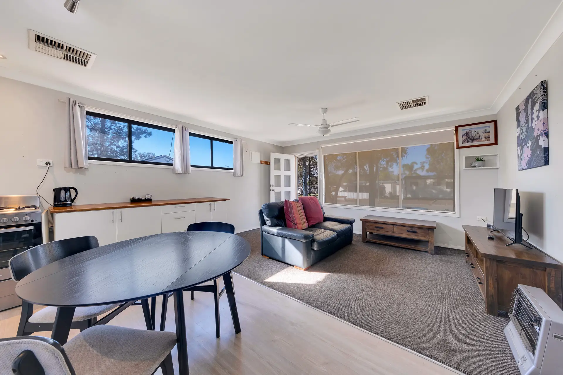 This two-bedroom house sleeps up to four guests, with a queen bed in one room and a two singles in the other. It includes a lounge area, full kitchen with electric cooktop, oven, microwave, dishwasher, and full-size fridge. Enjoy the comfort of air-conditioning, a TV, dining area, and a private bathroom. A furnished outdoor patio provides extra space to relax and unwind. Please note: The second bedroom is located out the back and is therefore not suitable for young children.