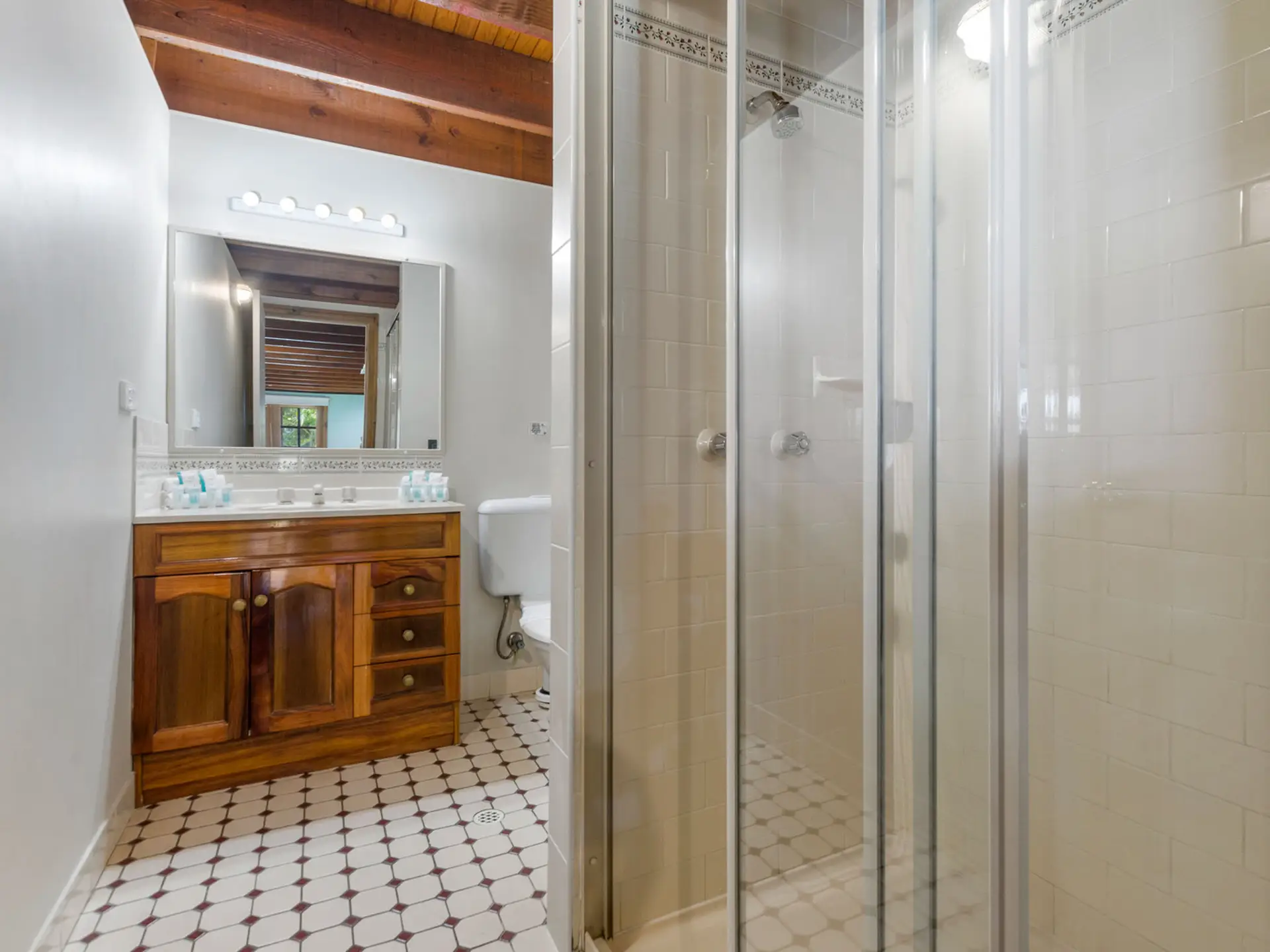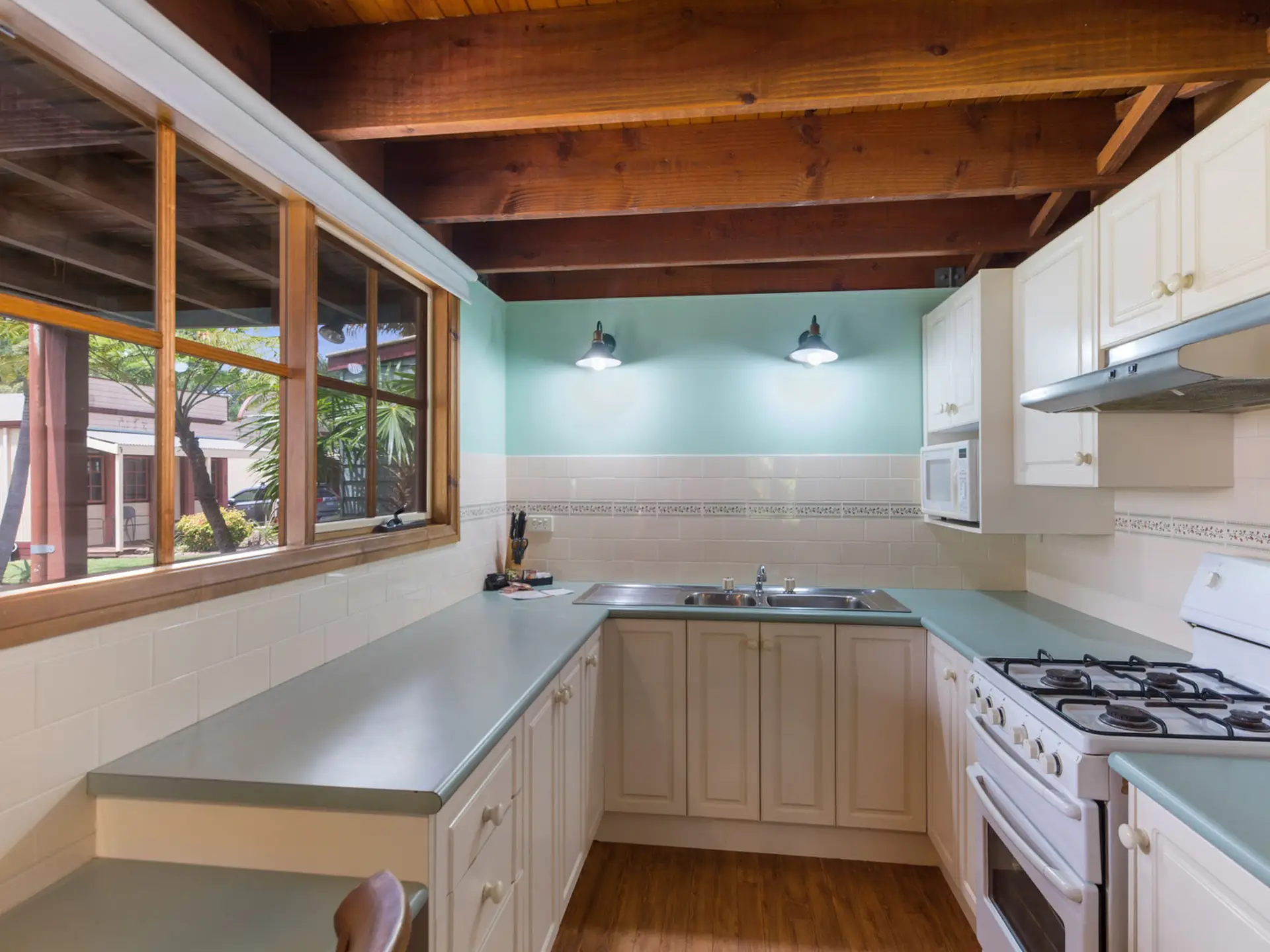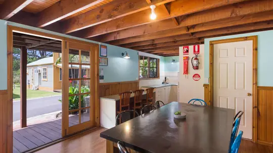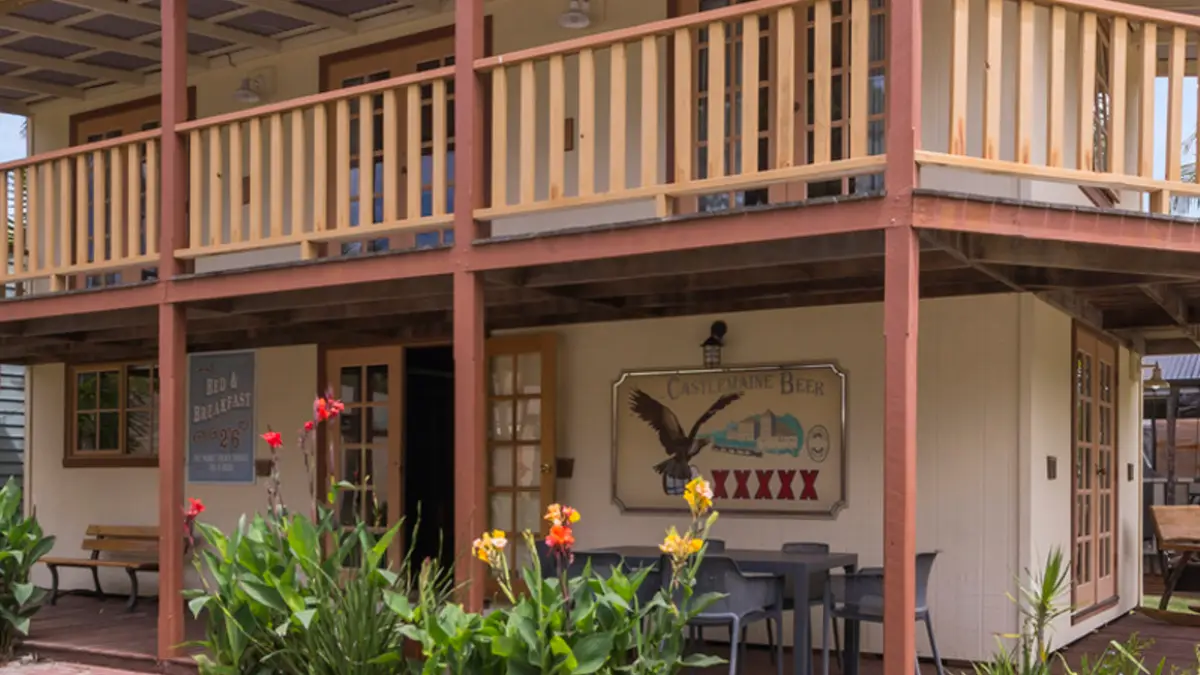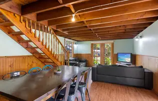Escape to a one-of-a-kind stay in the Olde Town Pub—an original Wairo Beach icon reimagined for modern comfort. This spacious cabin sleeps up to eight guests across three bedrooms with two queen beds and two bunk beds. Cook up family favorites in the full kitchen, then unwind on the private deck. Air conditioning ensures year-round comfort, all just a short stroll from the beach.