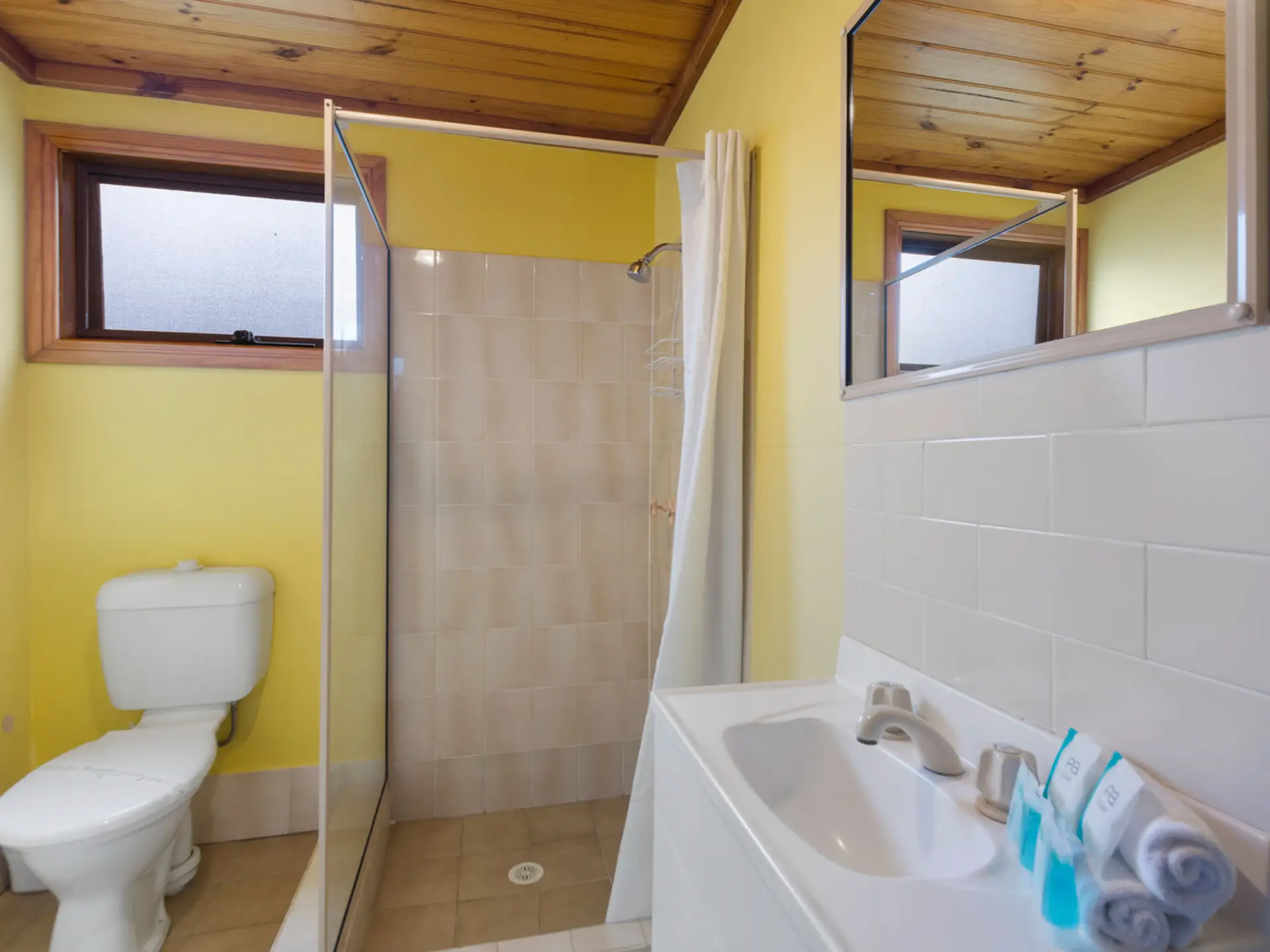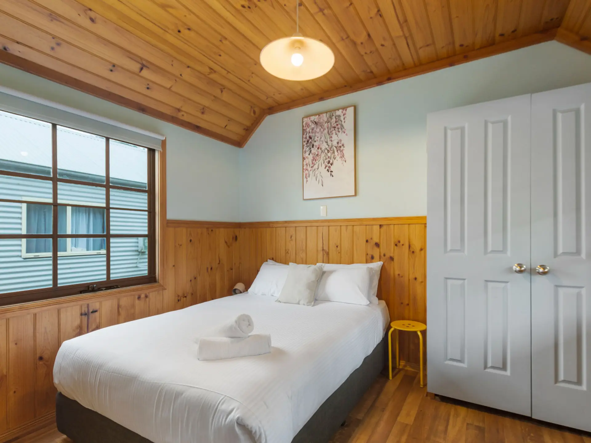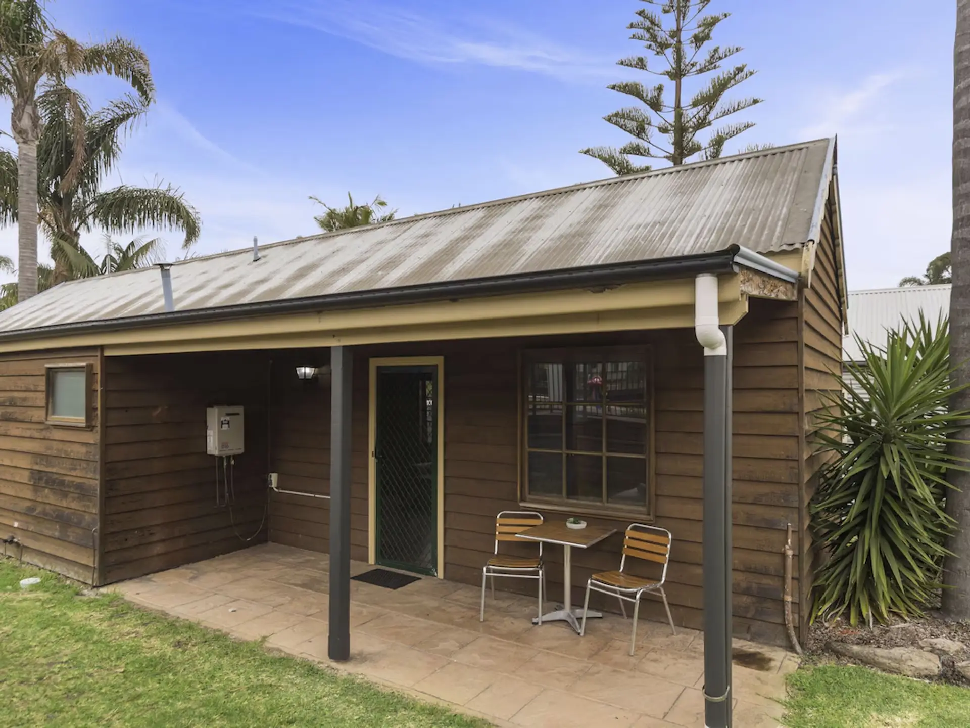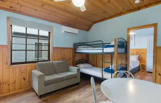 Ideal for couples or small families, this one-bedroom cabin accommodates up to four guests with one queen bed and a single bunk. Enjoy the convenience of a kitchenette with microwave and fridge, plus air conditioning and a dining area. Step outside to your private patio with garden and pool views, perfect for unwinding after a day exploring Wairo Beach.