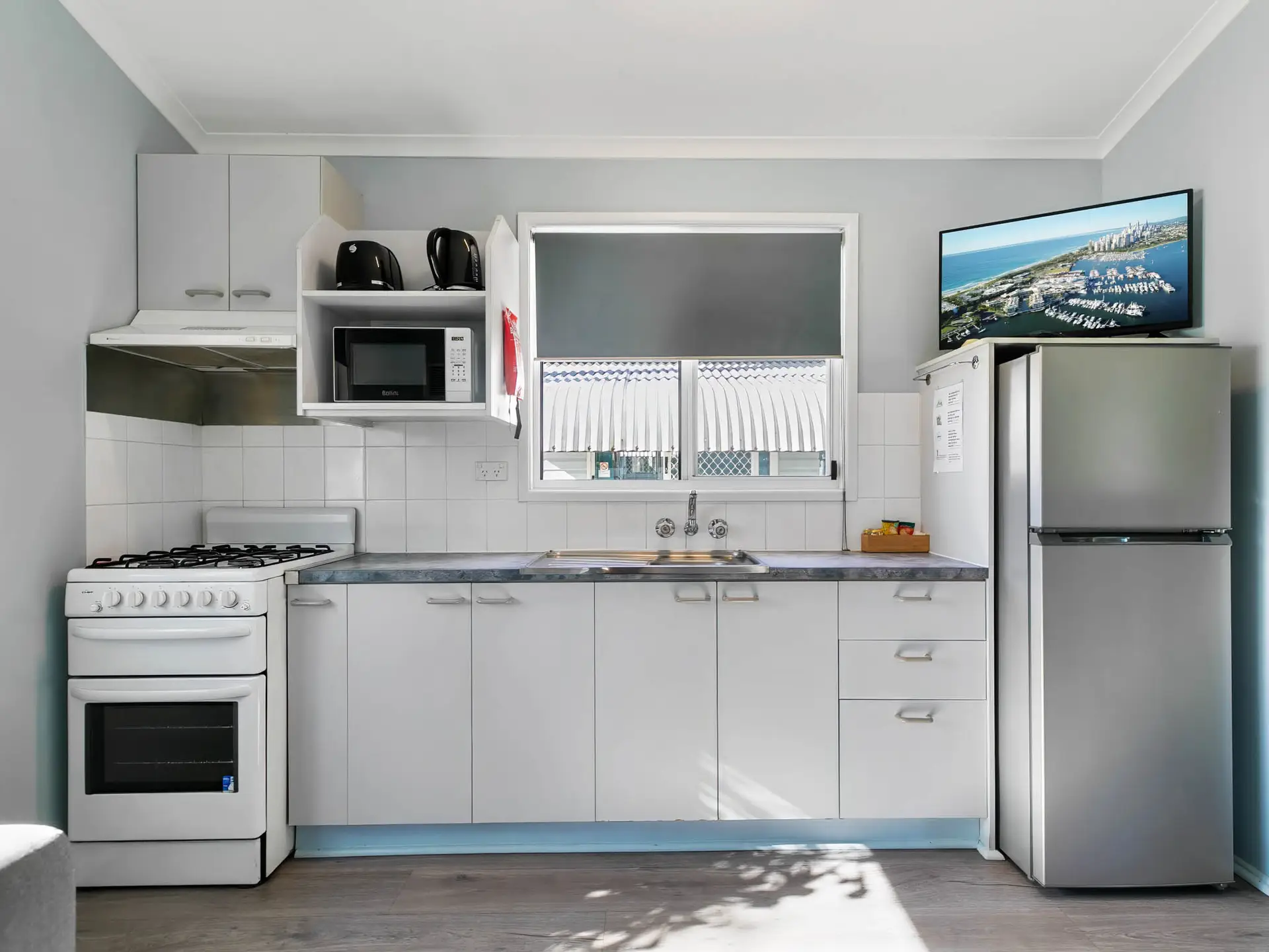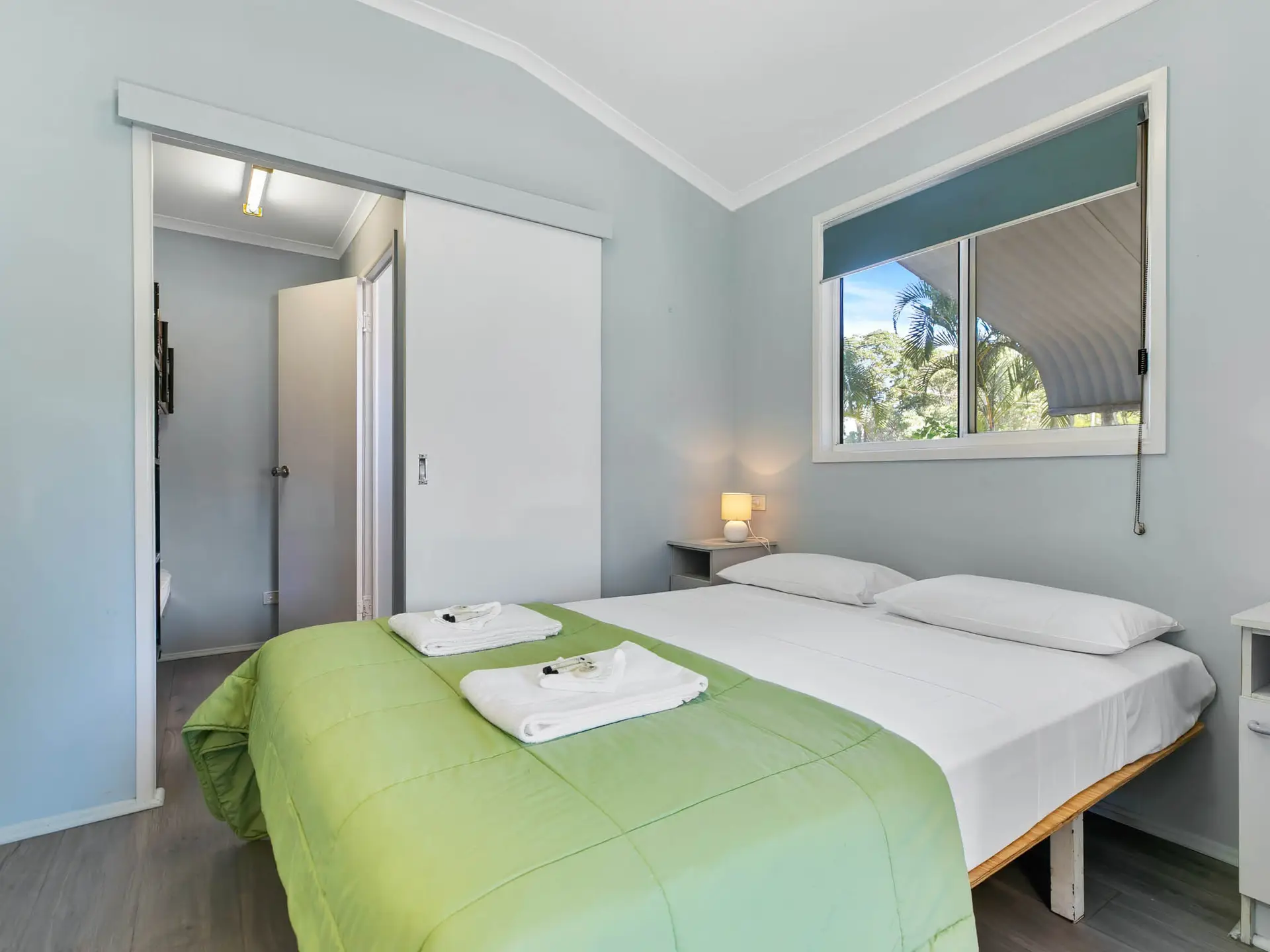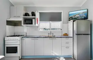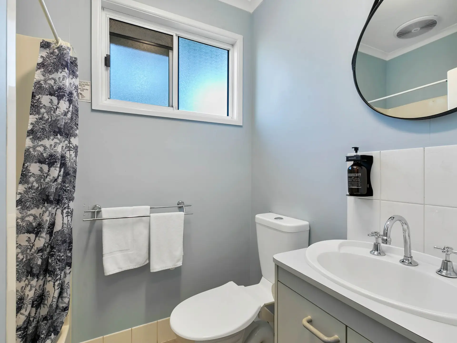 Ideal for couples or small families, this studio sleeps up to four with a queen bed and single bunks. The open-plan layout includes a full kitchen, dining space, TV, and private bathroom. Reverse-cycle air conditioning and ceiling fans offer year-round comfort. Step outside to a covered patio with outdoor setting—perfect for relaxed mornings or sunset wind-downs. With linen supplied, it’s a peaceful and affordable beachside retreat. Note: Bunk beds are best suited to children and may not comfortably accommodate adults.
