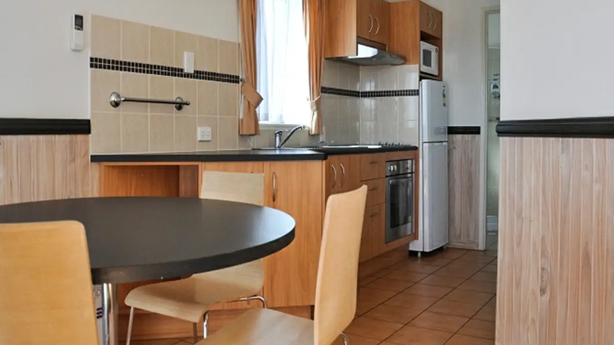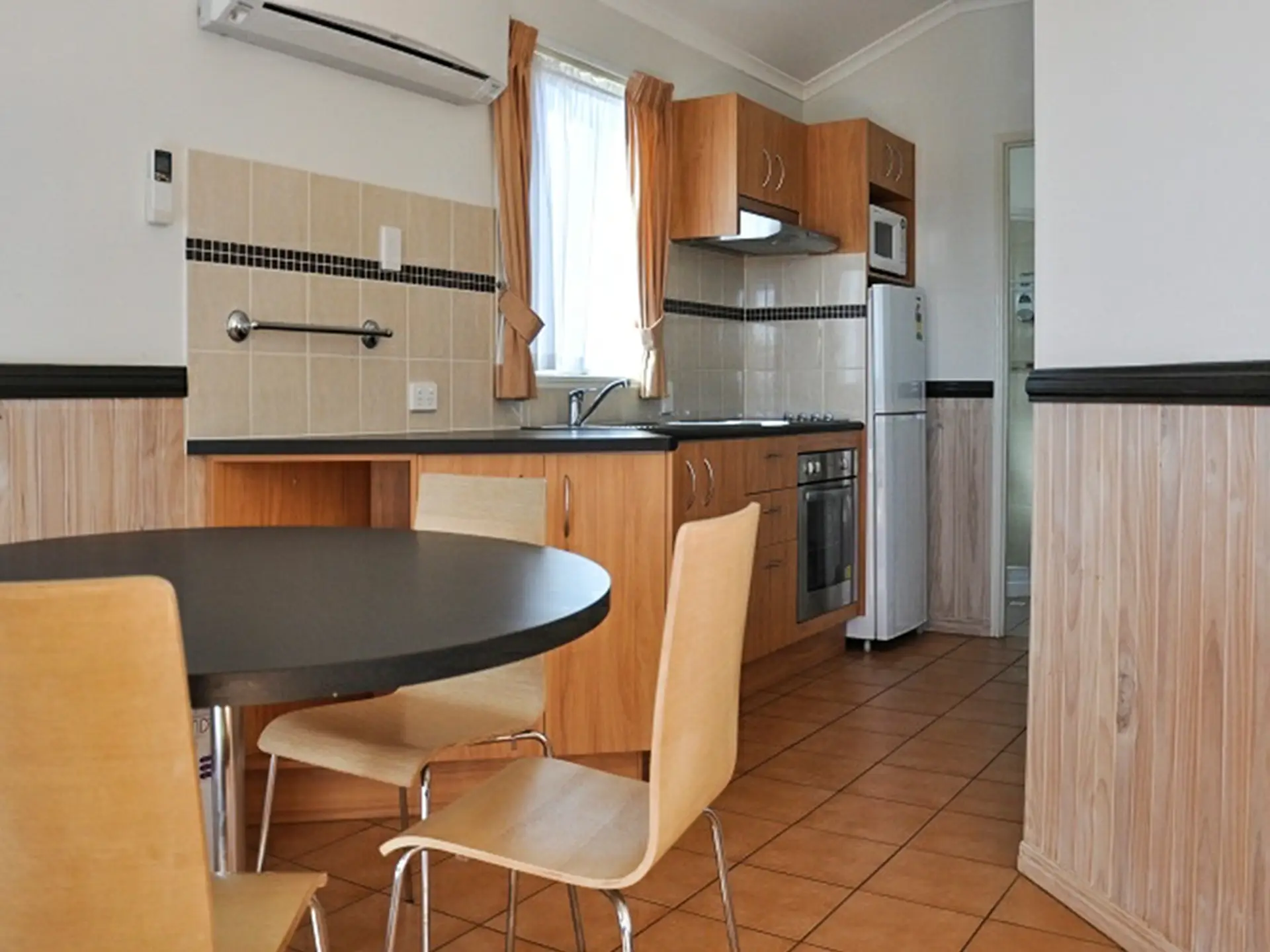 2 bedrooms 1 Queen bed, 2 x Single beds, Full kitchen, Bathroom, TV and Air-Conditioning. Linen provided.