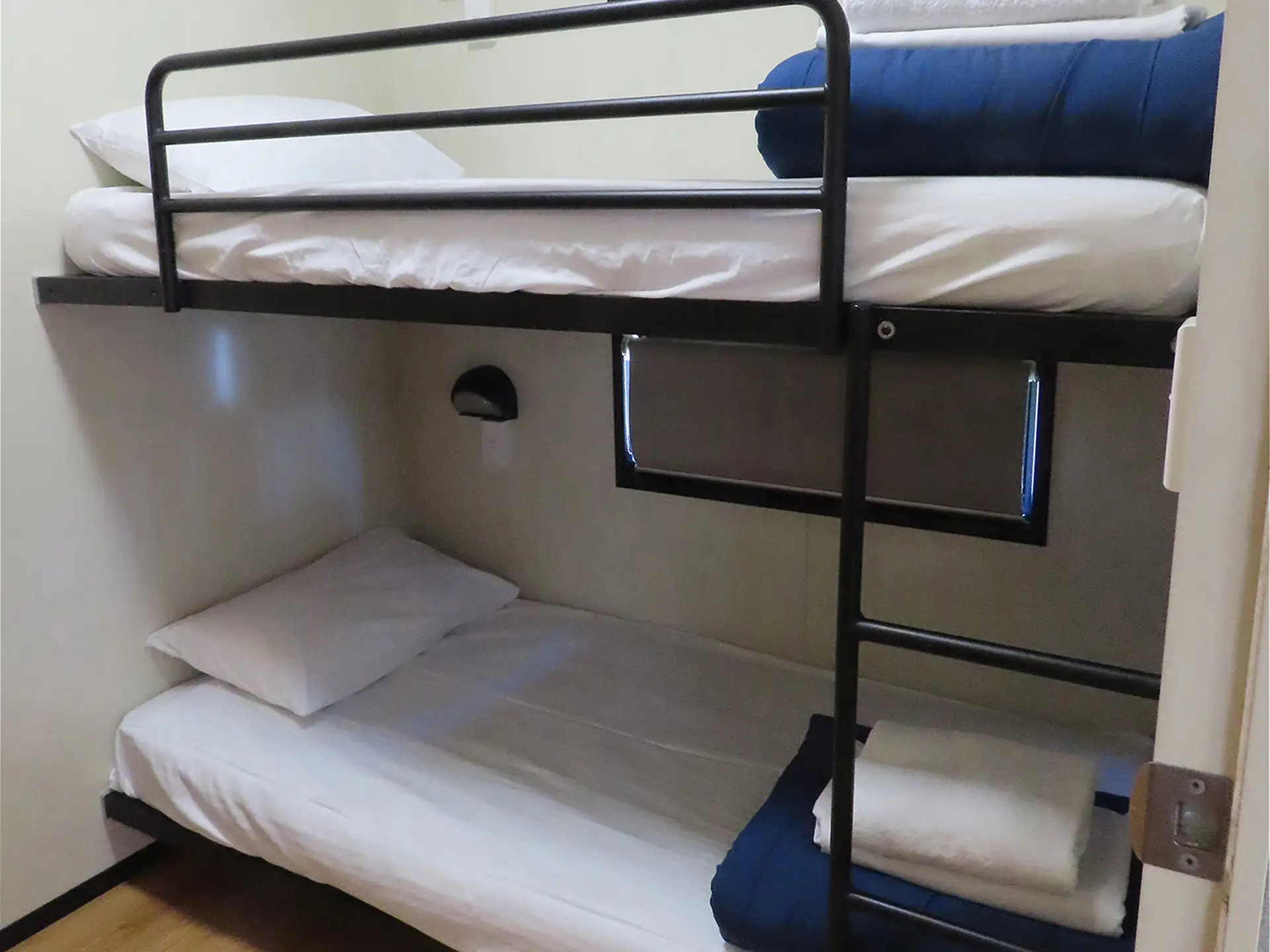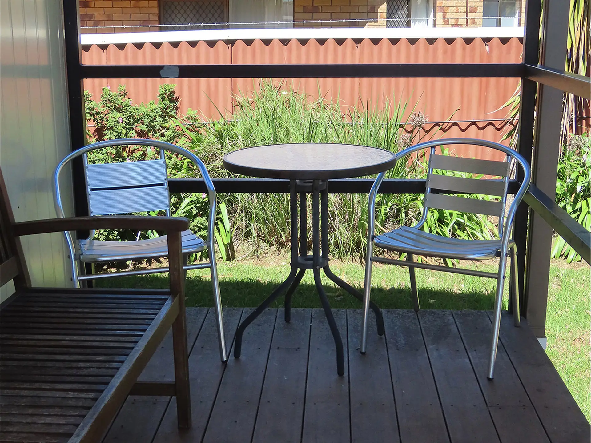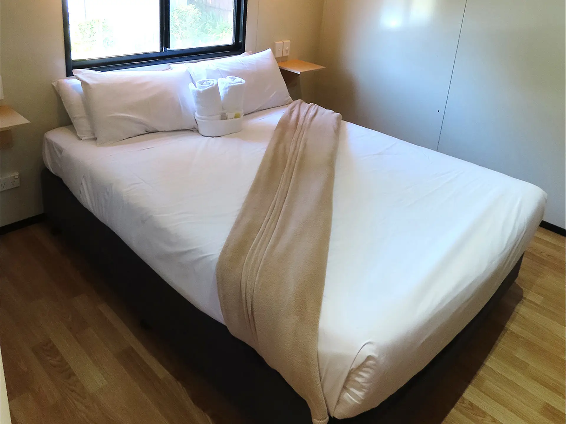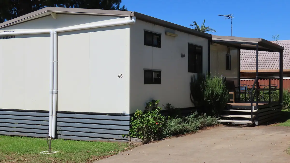 This fully self-contained cabin has 3 bedrooms with a queen bed in the main bedroom and two sets of bunks in the remaining two bedrooms. The separate living area has a fully self-contained kitchen, cooking facilities, digital television and split system/reverse cycle air conditioner. These cabins also have an outdoor setting to enjoy your morning coffee out in the fresh air.