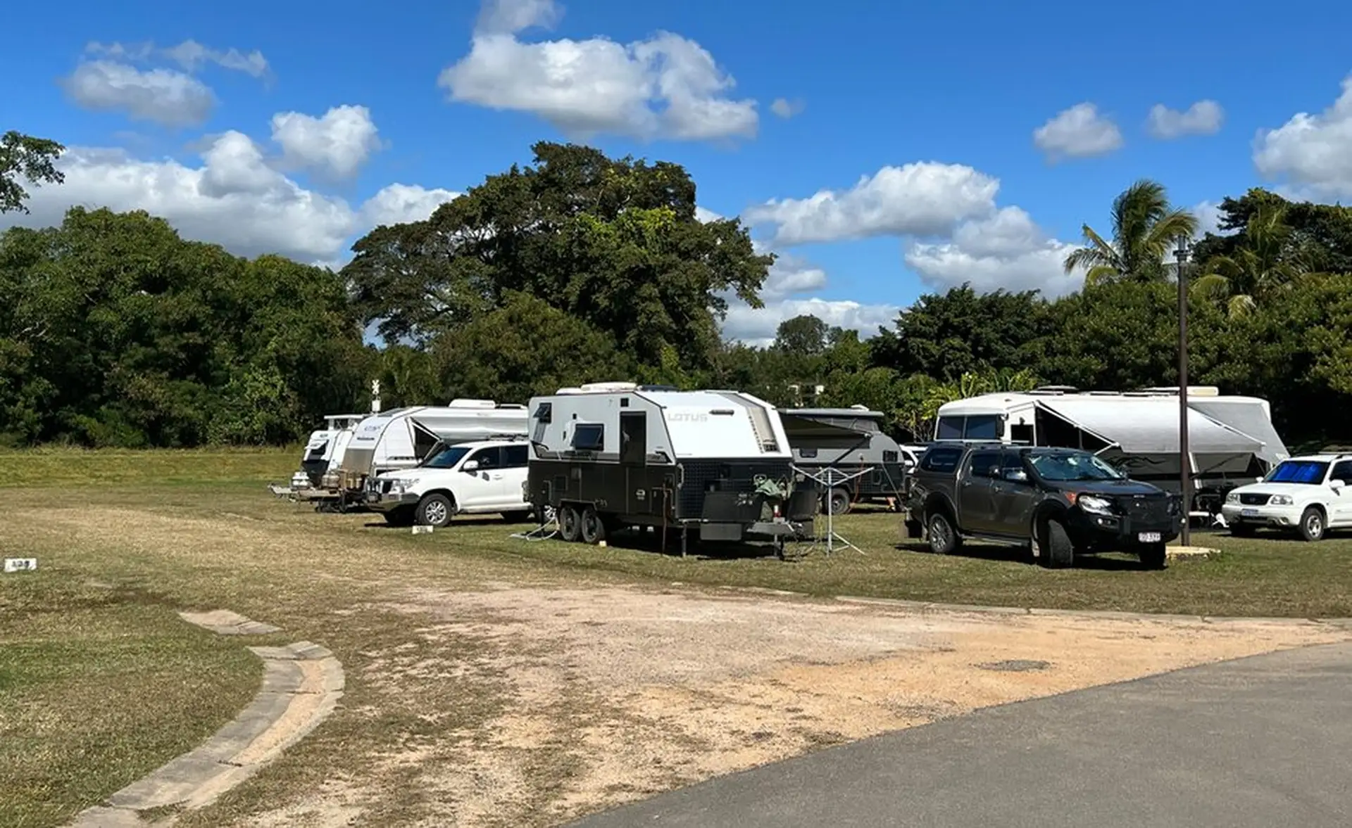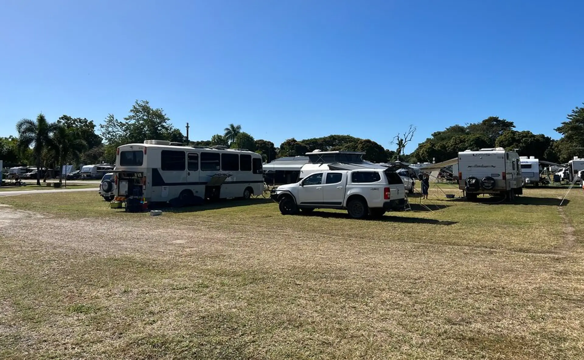 These spacious powered grass sites are ideal for large setups including fifth wheelers and buses. Located in a quiet part of the park, they’re close to two amenities blocks with laundry, shaded communal areas and a short stroll to the salt water pool. Pets are welcome and sites are available year-round.