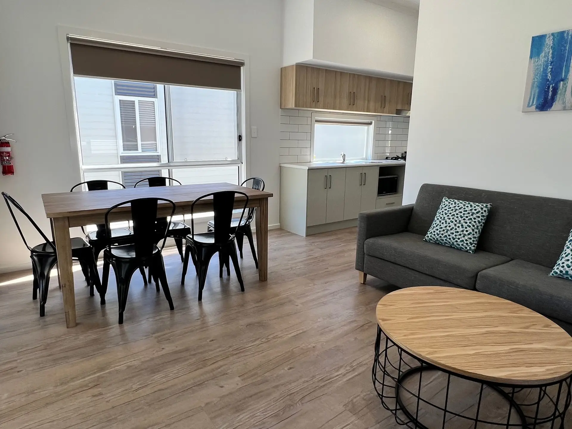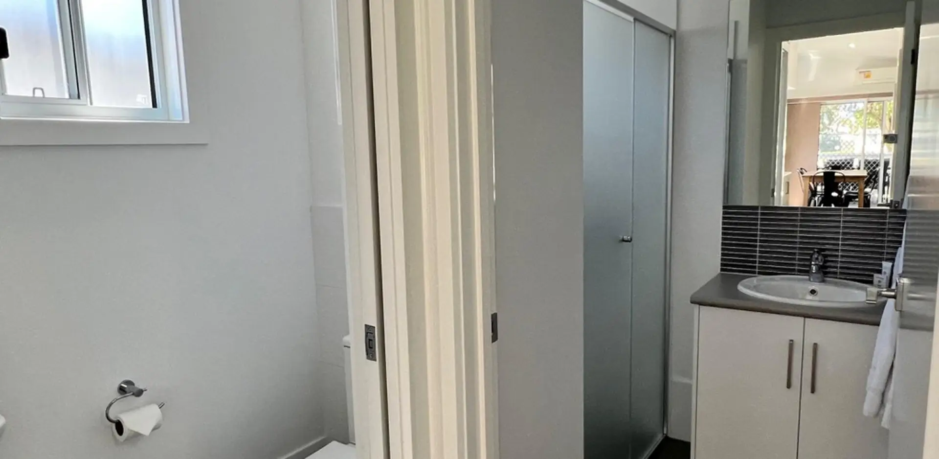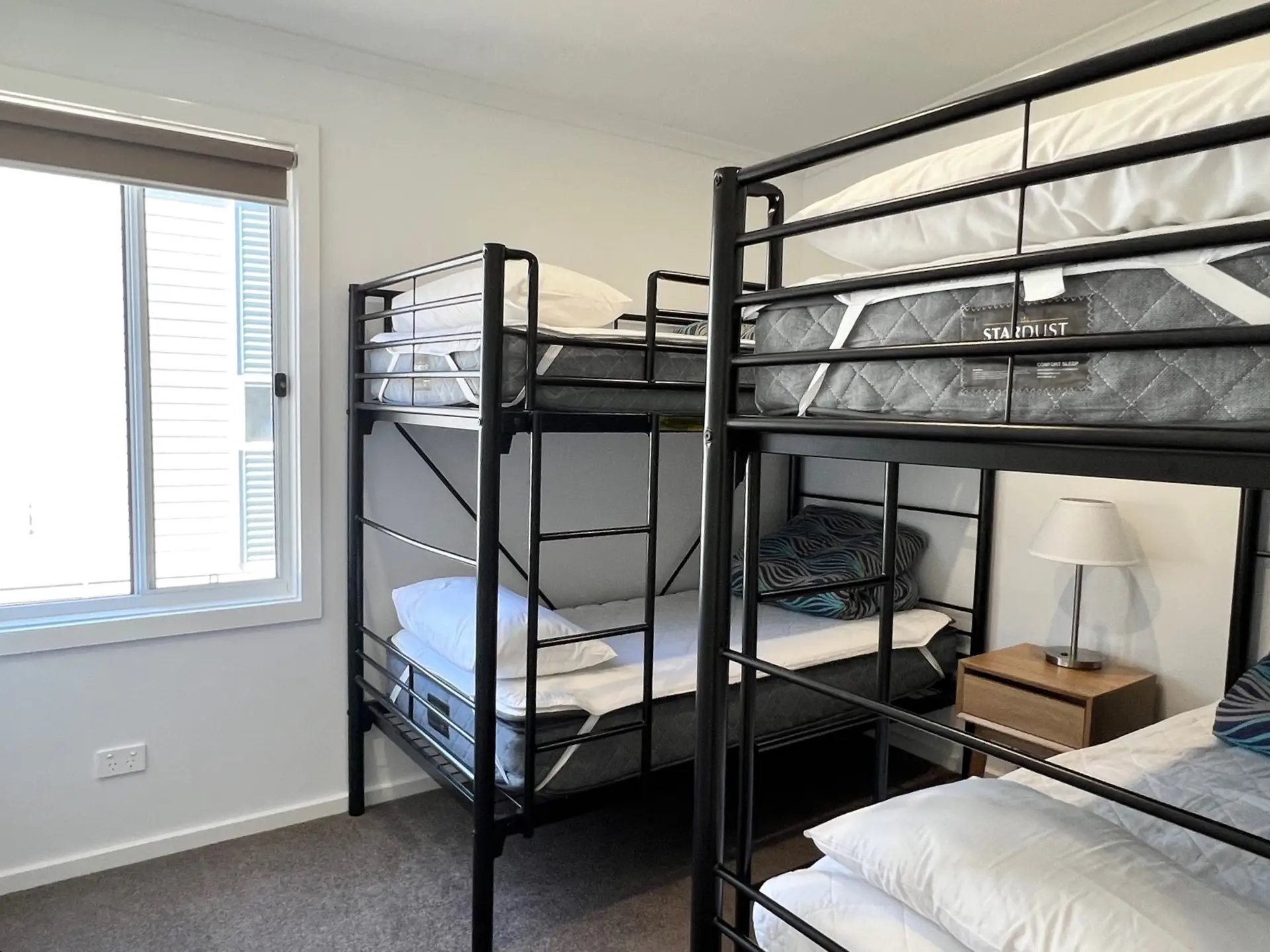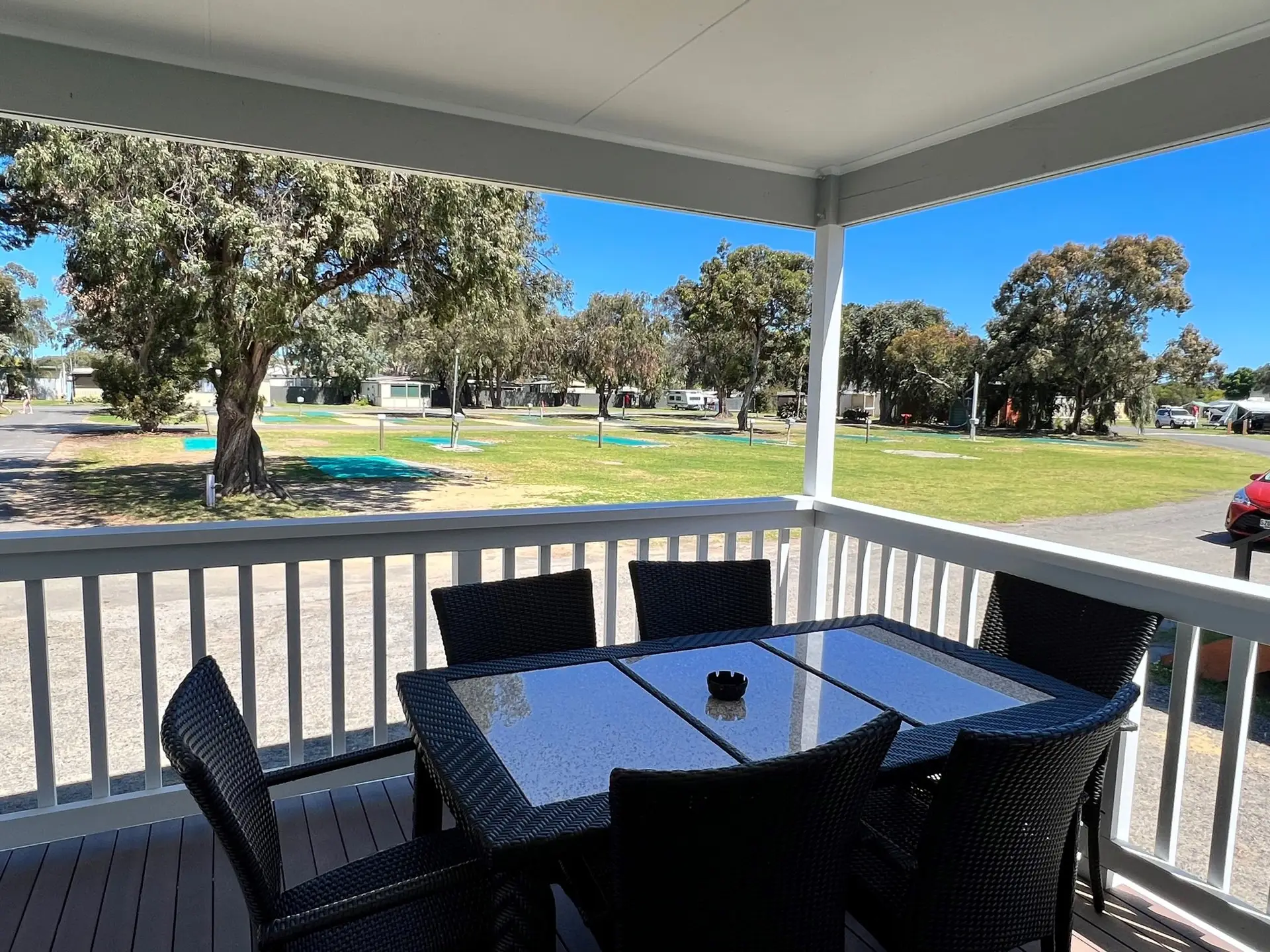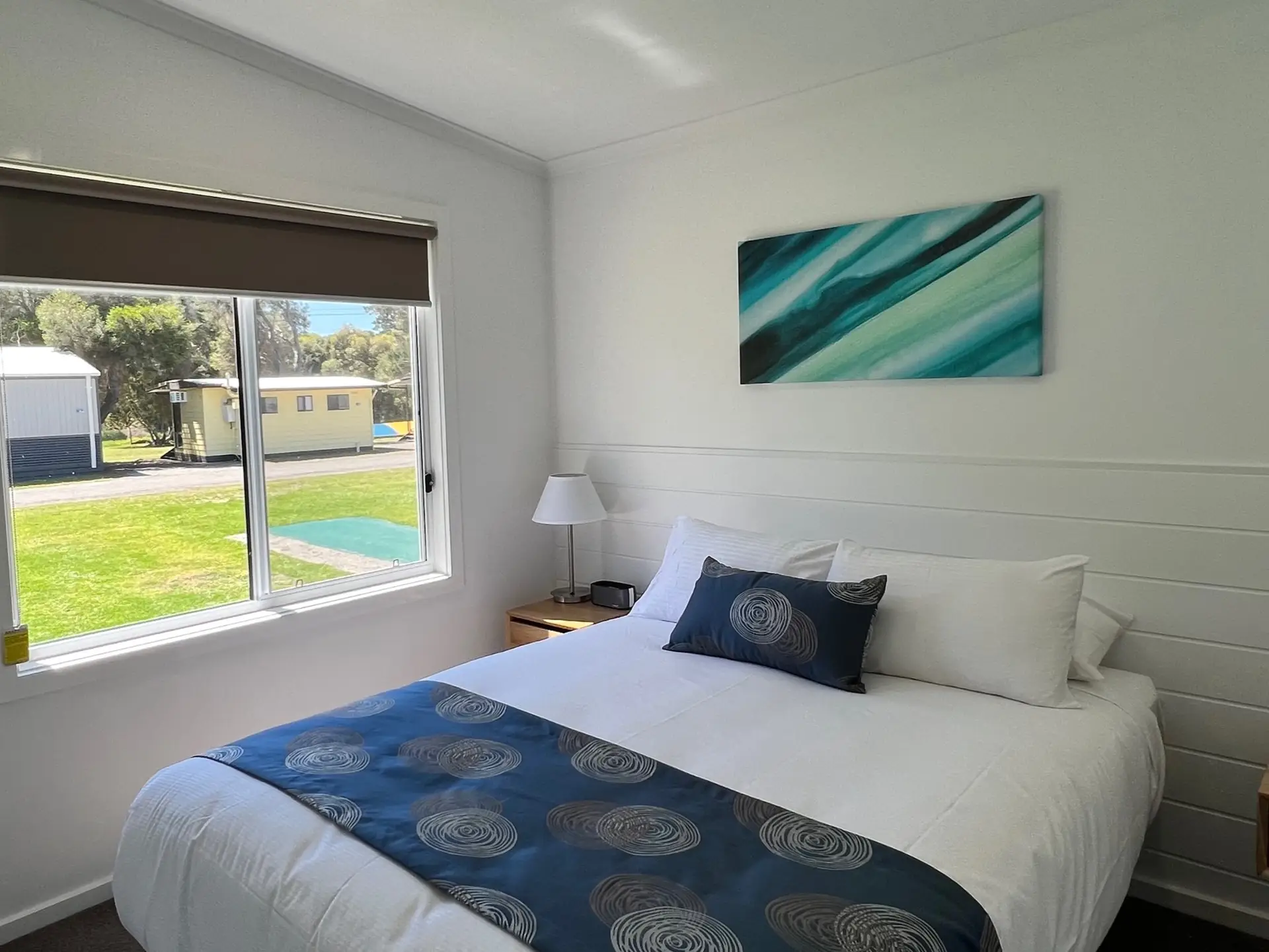Centrally located near the pool and play areas, this two-bedroom cabin sleeps up to six with a queen bed and two sets of bunks. Enjoy a self-contained kitchen with gas oven, cooktop, microwave, and full-size fridge. The air-conditioned lounge and dining area offers space to relax, while the undercover deck is perfect for alfresco meals. With a bathroom, separate toilet, and modern conveniences, it’s an ideal choice for families wanting comfort and convenience.