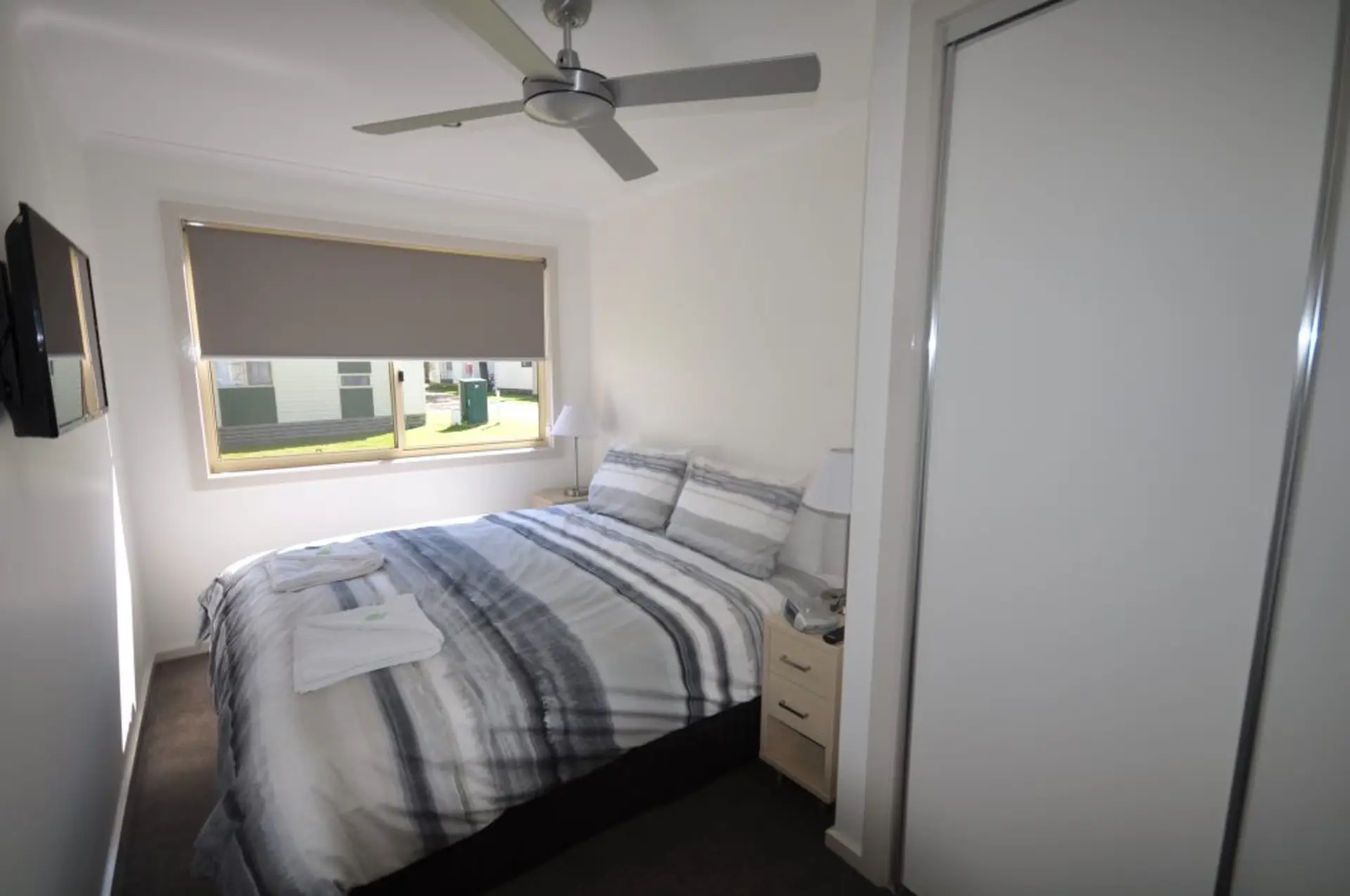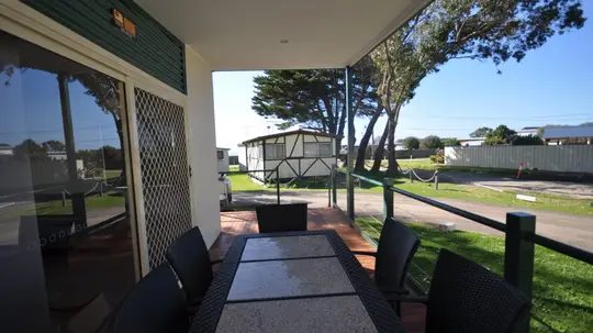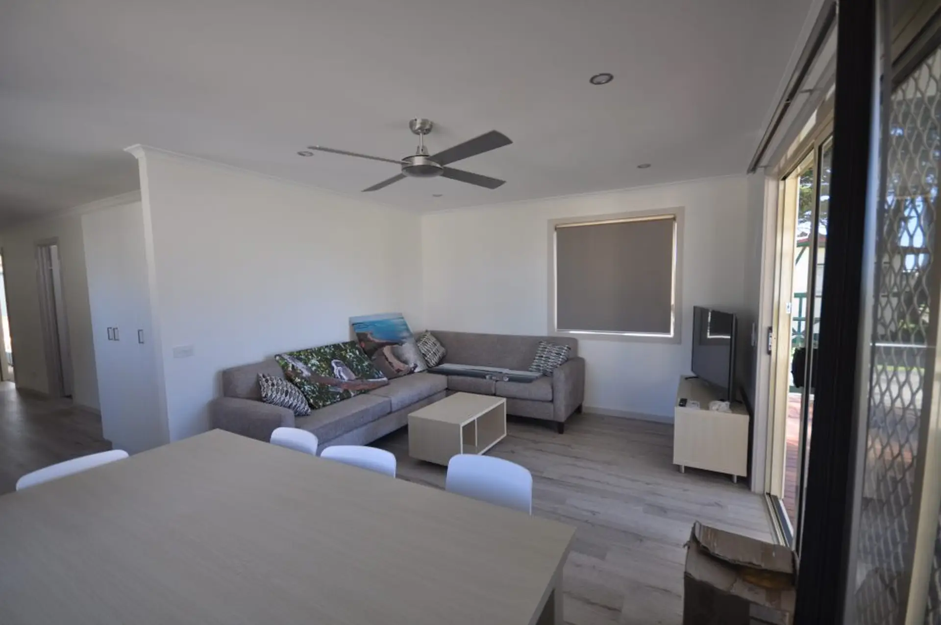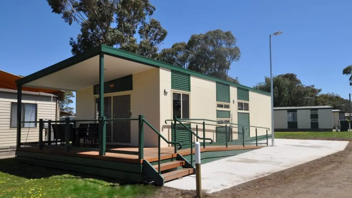 Spacious and accessible, this three-bedroom cabin sleeps up to seven with a king bed, single bunk, and 3 single beds—linen included. Ideal for families or groups, it features a large living area, full kitchen, and accessible bathroom with handrails and walk-in shower. Relax with TV, air-conditioning, and a private verandah with ramp access. A welcoming, inclusive coastal stay for all.