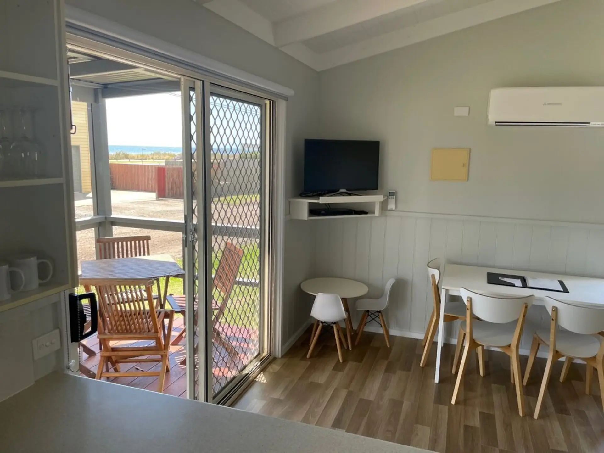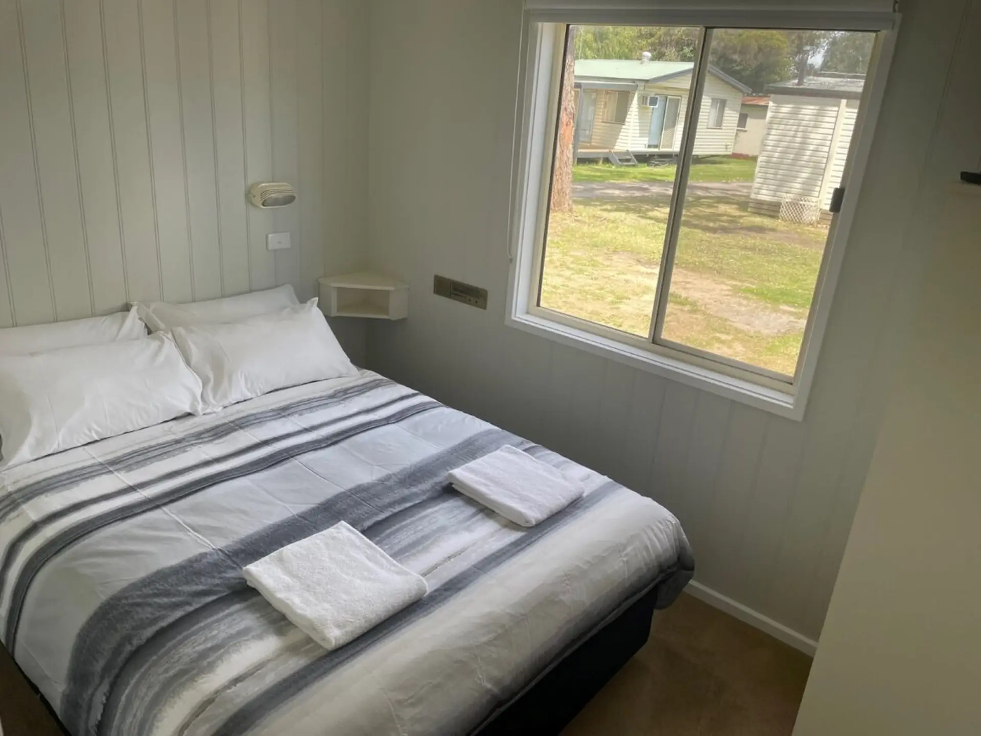 Wake up to stunning sea views in this two-bedroom cabin, sleeping up to five with a queen bed and tri-bunk—linen provided for the queen. Enjoy a full kitchen, spacious living area with TV and DVD player, and reverse-cycle air conditioning. Step out onto your private verandah for sunrise coffees or sunset drinks. With comfort, convenience, and breathtaking views, it’s the perfect coastal retreat.